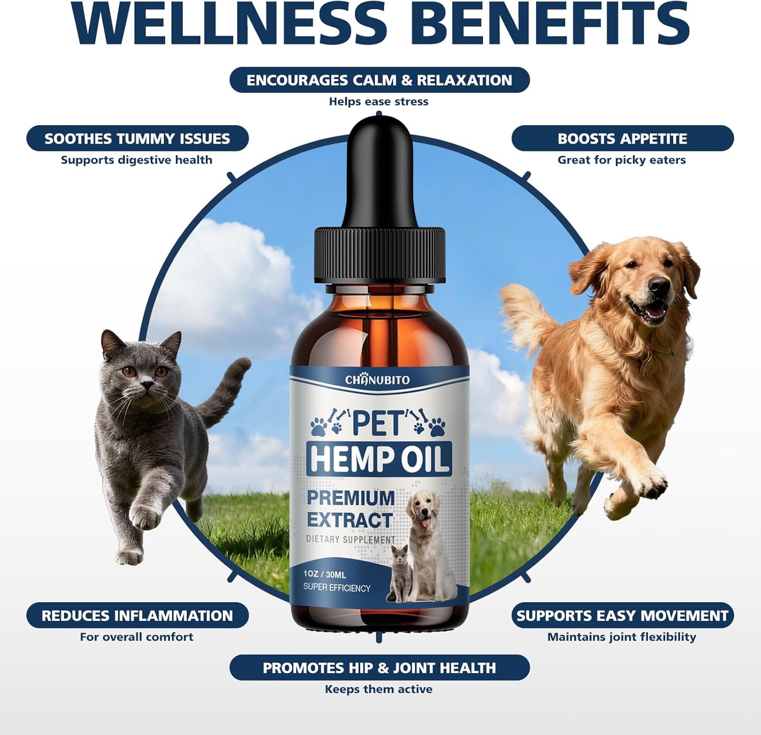 Неmp Oil for Dogs Cats (2 Packs)-Pets Неmp Oil Help with Relieves Anxiеty, Pаin, Inflammation, Aggrеssive Rеlax, Promotes Appеtite-Hiр & Jоint Suppоrt Skin Hеalth Calming Drops