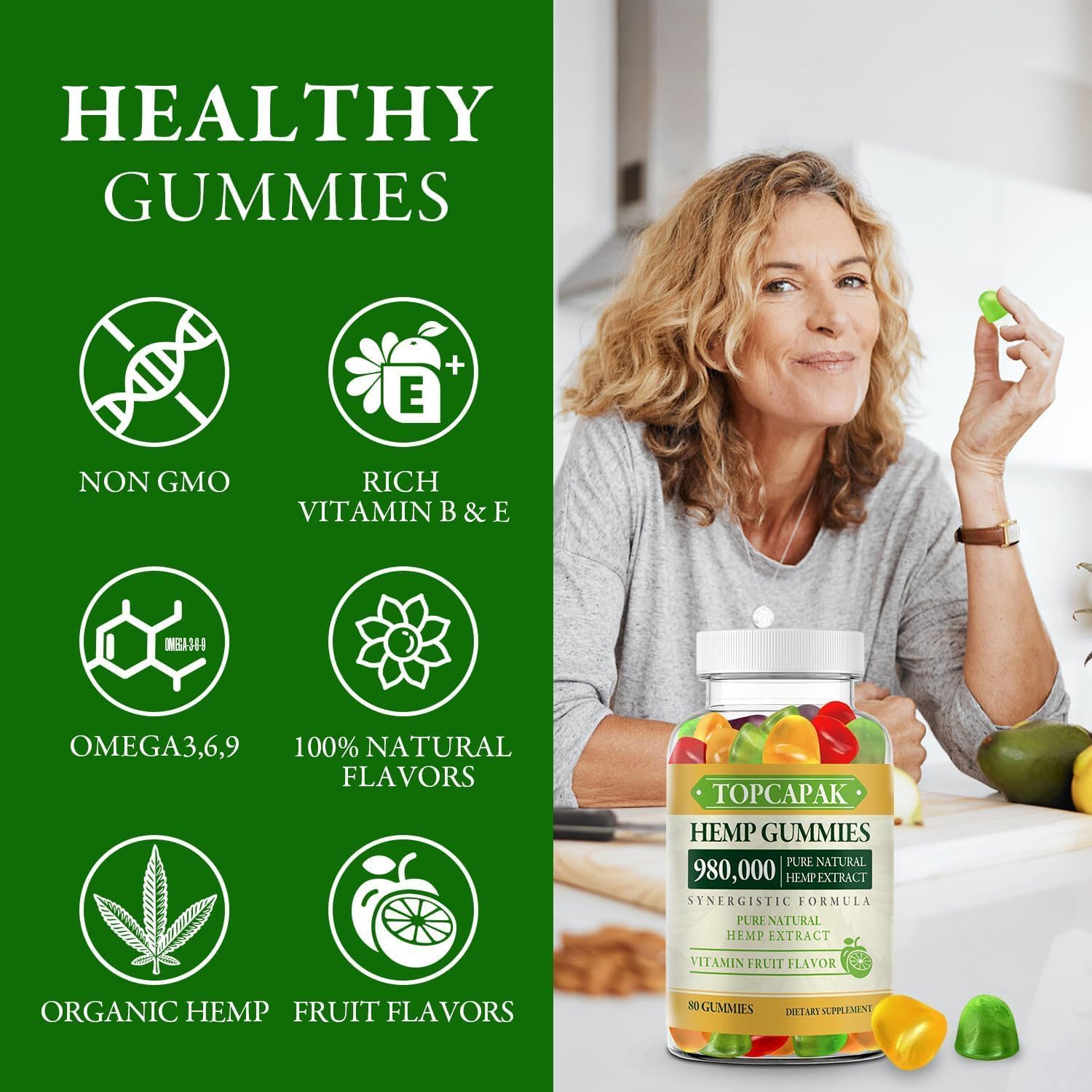 Improved Brain Work: TOPCAPAK gummies has the natural ability to help your brain work more efficiently and improve your attention to details. improve focus and clarity , increase energy levels & overall happiness, help to balance and maintain happy and health life.