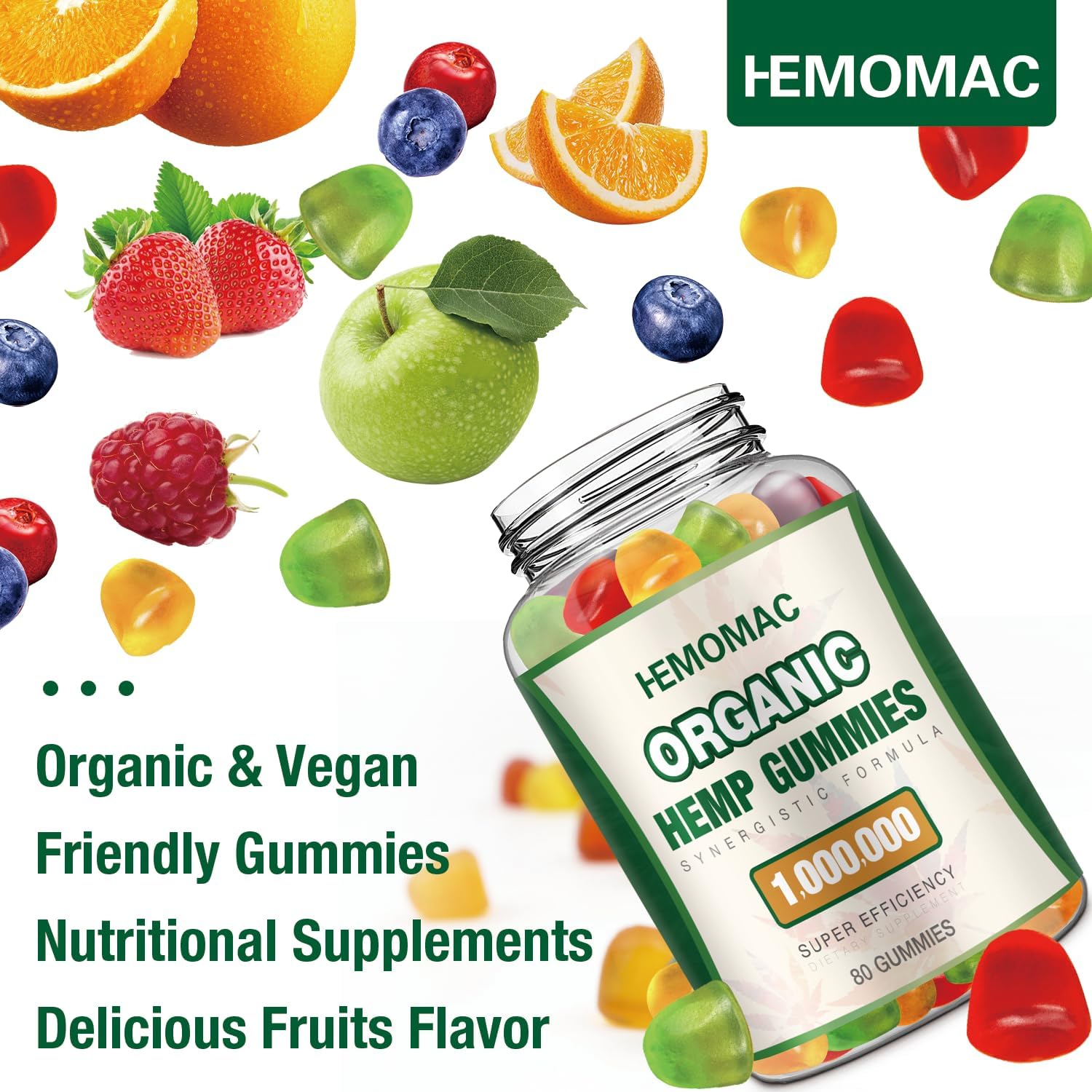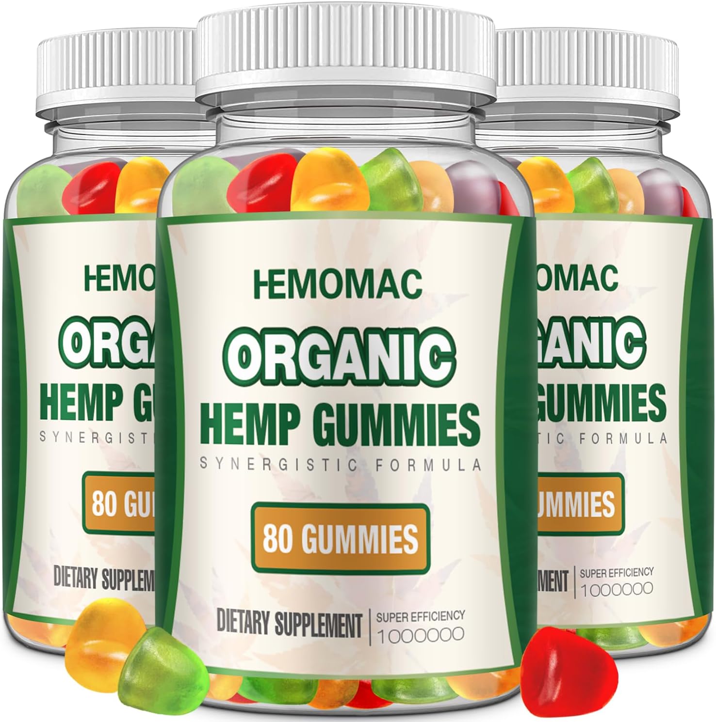 (3 Packs) Organic Hemp Gummies High Potency for Pain Anxiety Sleep Edibles Gummy Hemp Oil Extract – Vegan Non-GMO