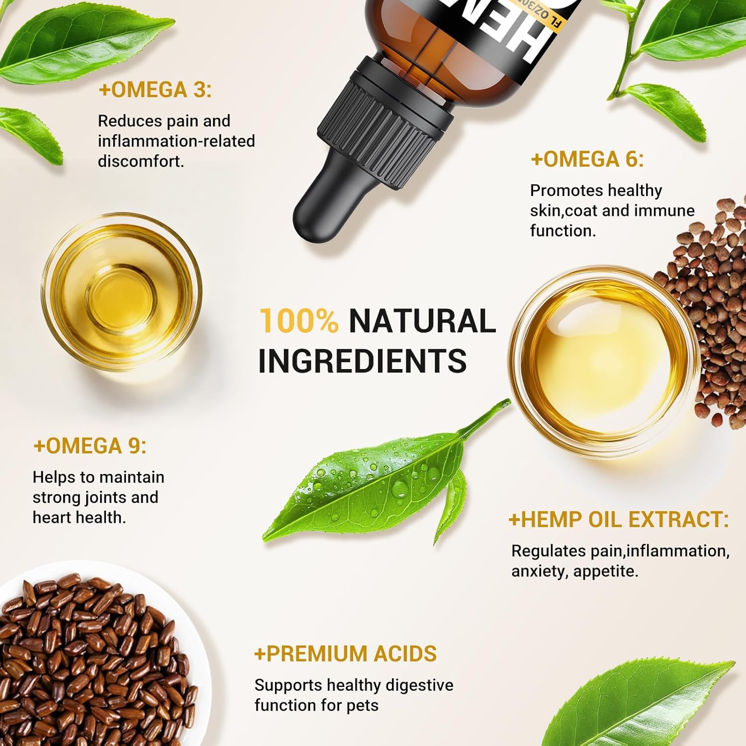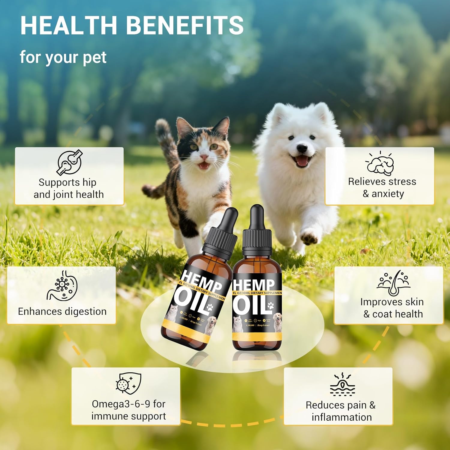 【Premium Quality With Long-Term Value】Experience fast-absorbing hemp oil that works as reliable calming drops for dogs and effective pain relief for cats. With our multi-bundle pack, you get premium ingredients and lasting savings—perfect for maintaining your pet’s calm and comfort day after day. Quality care shouldn’t cost a fortune!