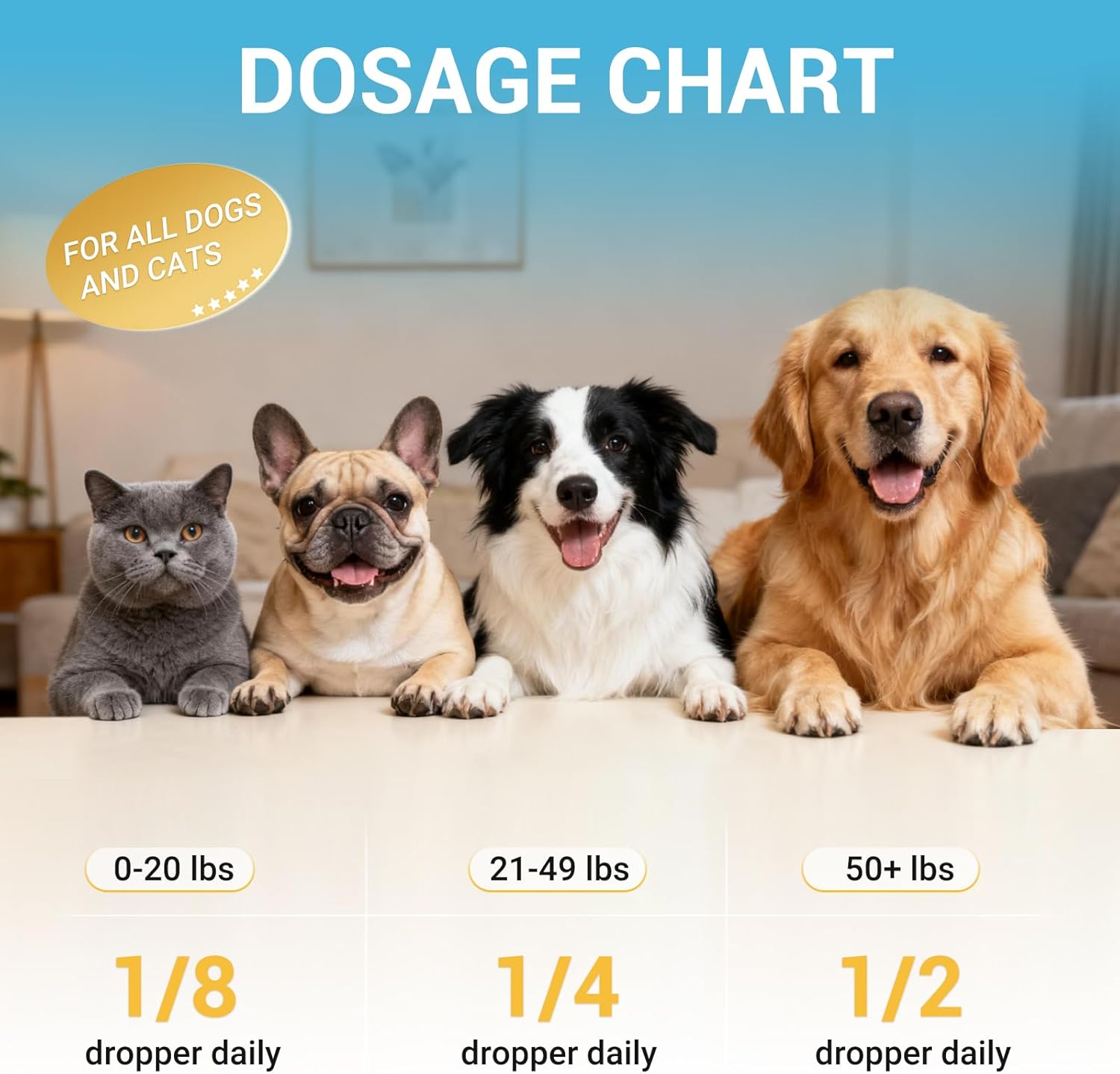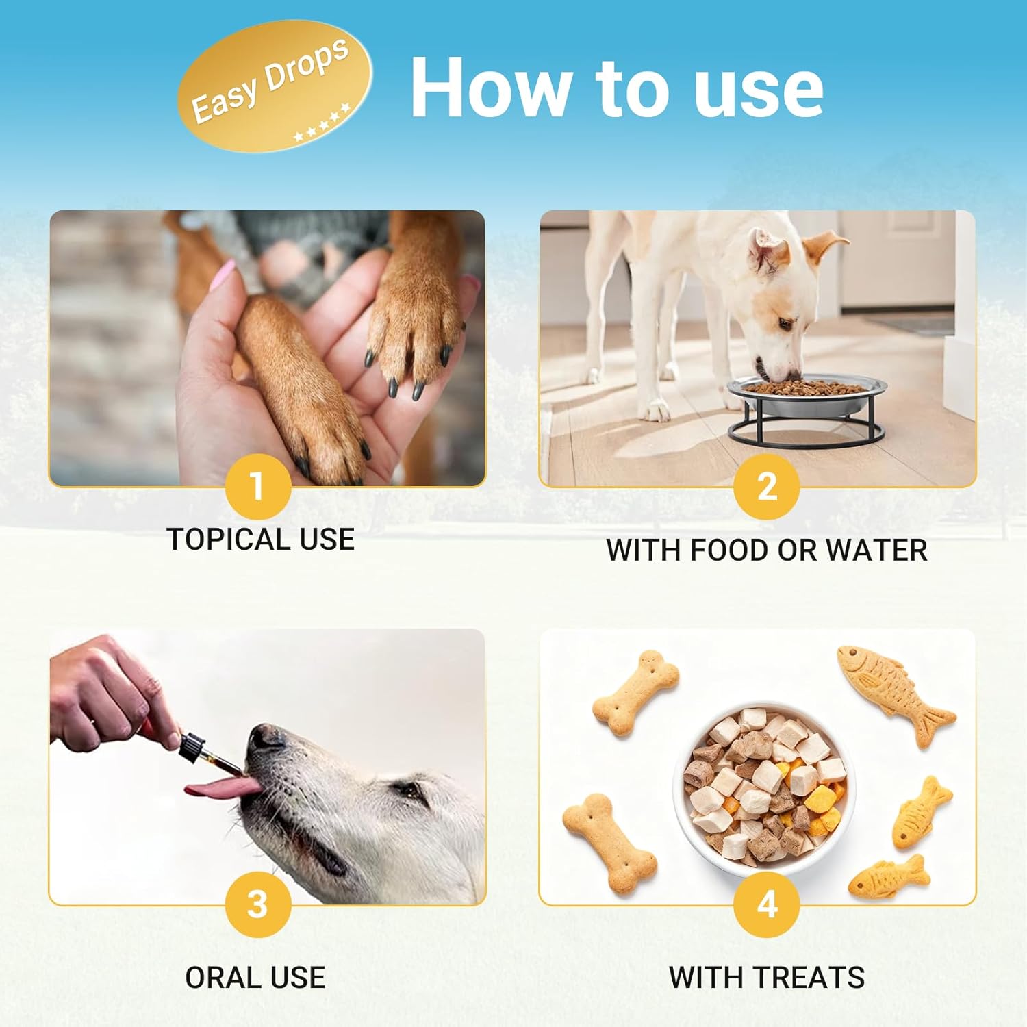 【Calming And Relaxation】From dog anxiety relief to cat anxiety relief, our drops offer comprehensive care. Ease discomfort with effective pain relief for dogs, while promoting relaxation and restful sleep. Whether it’s joint stiffness or nighttime restlessness, this versatile solution brings peace and vitality to your pet’s life.