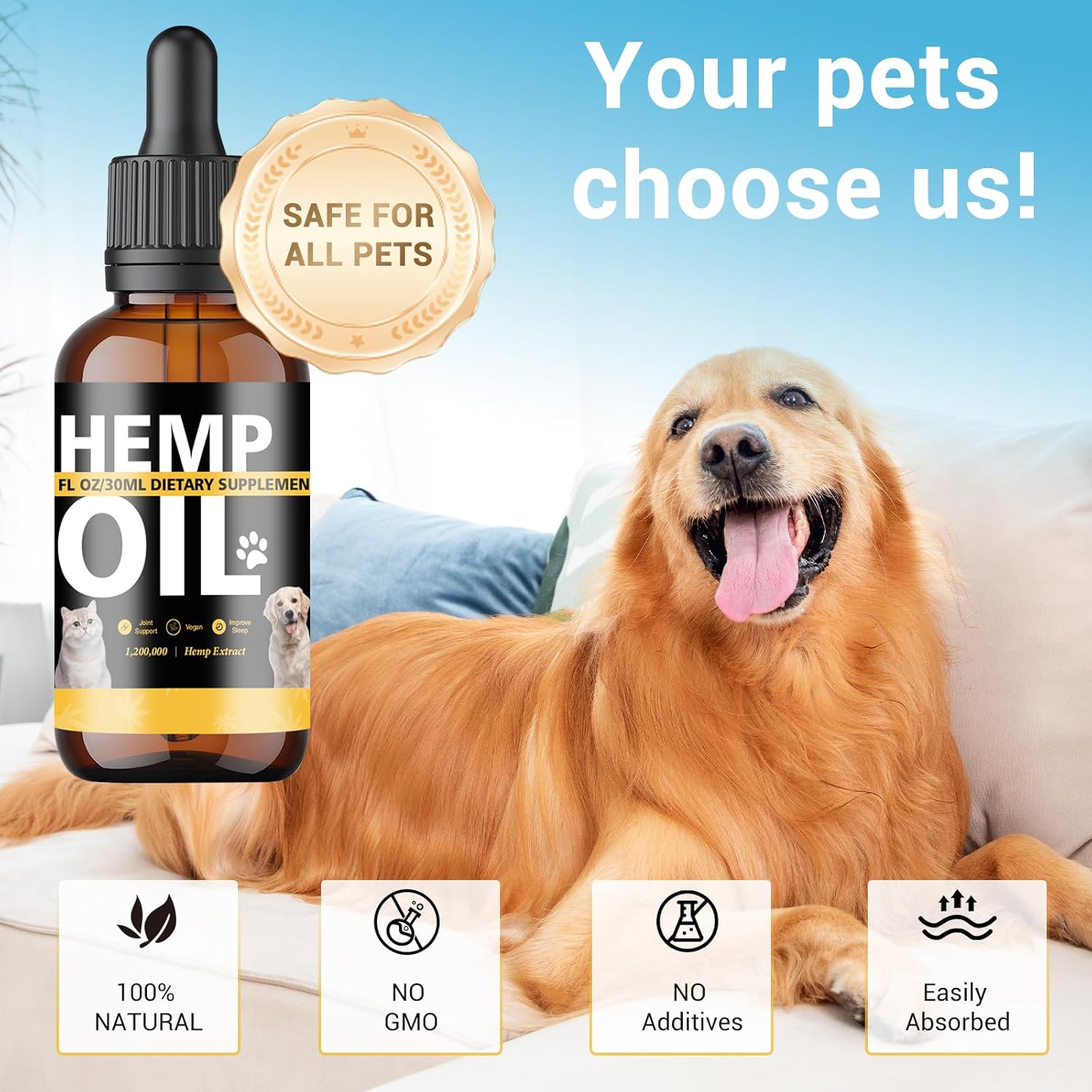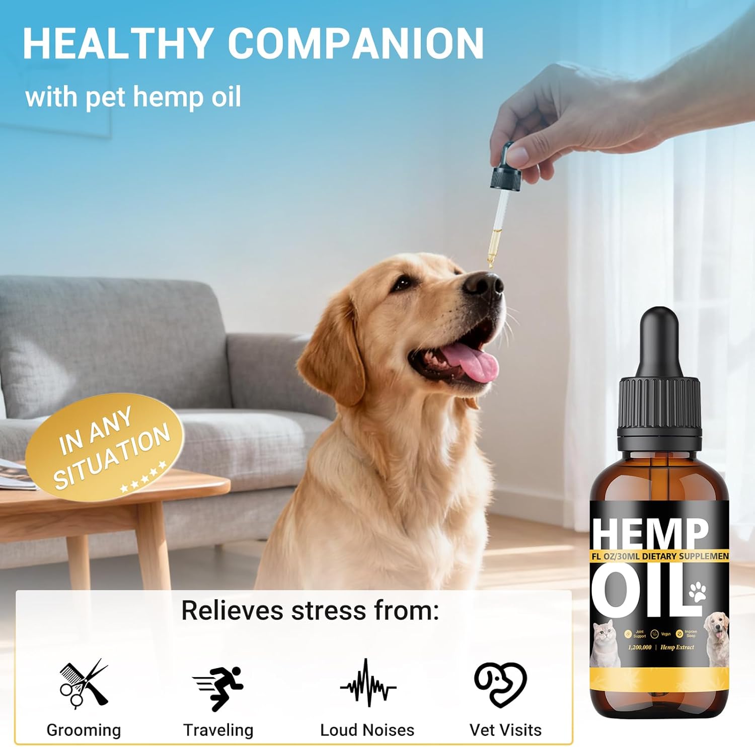 【Stress Relief And Joint Mobility】Soothe your pet through life’s noisy surprises. From rumbling thunderstorms to moving day chaos, our natural hemp oil offers fast-acting dog stress and anxiety relief and effective cat stress relief. It also helps soothe joint discomfort during recovery, making it their gentle companion for any upsetting moment.