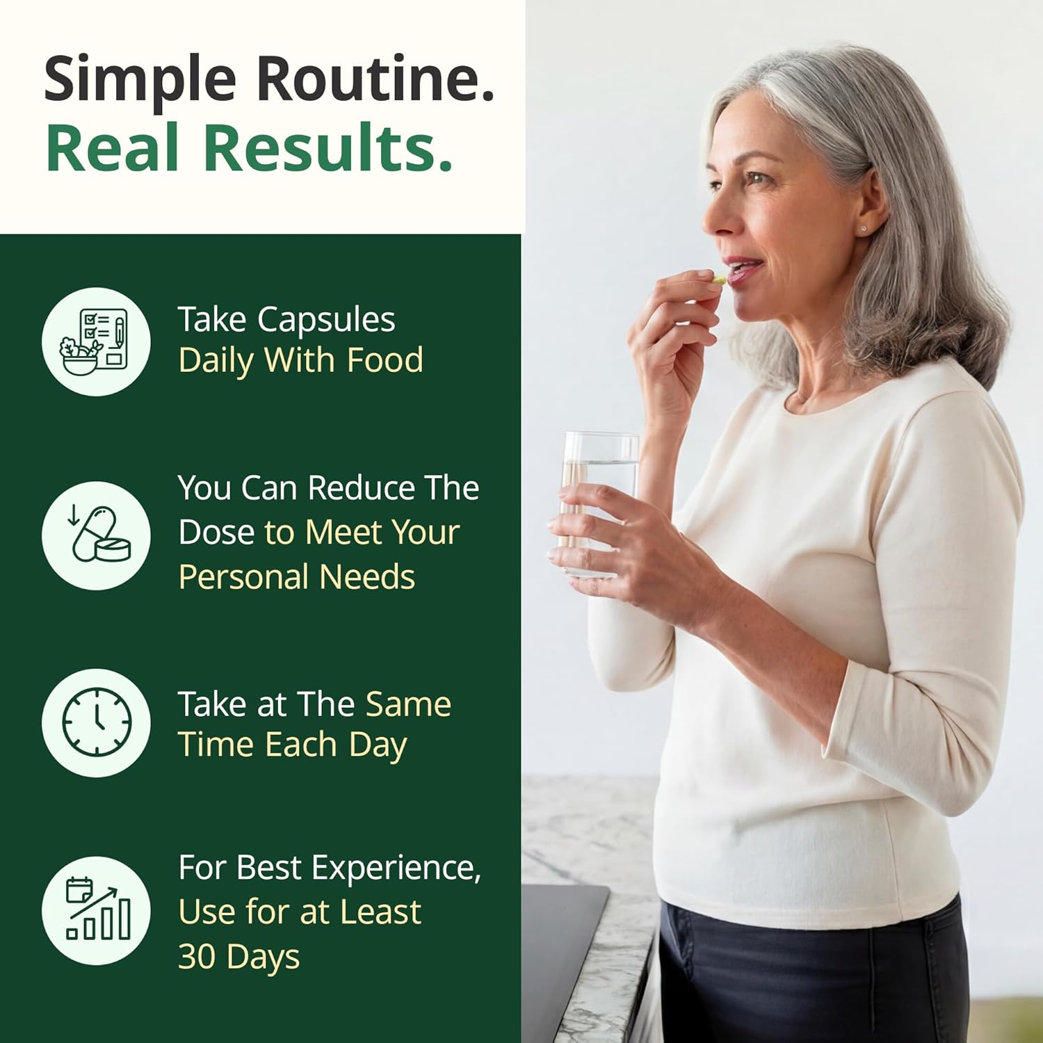How It Works, Simply Explained — This formula helps balance your body’s natural inflammatory response over time. No confusing megadoses — just 2 easy-to-take capsules with food, every day. 30-day supply.*