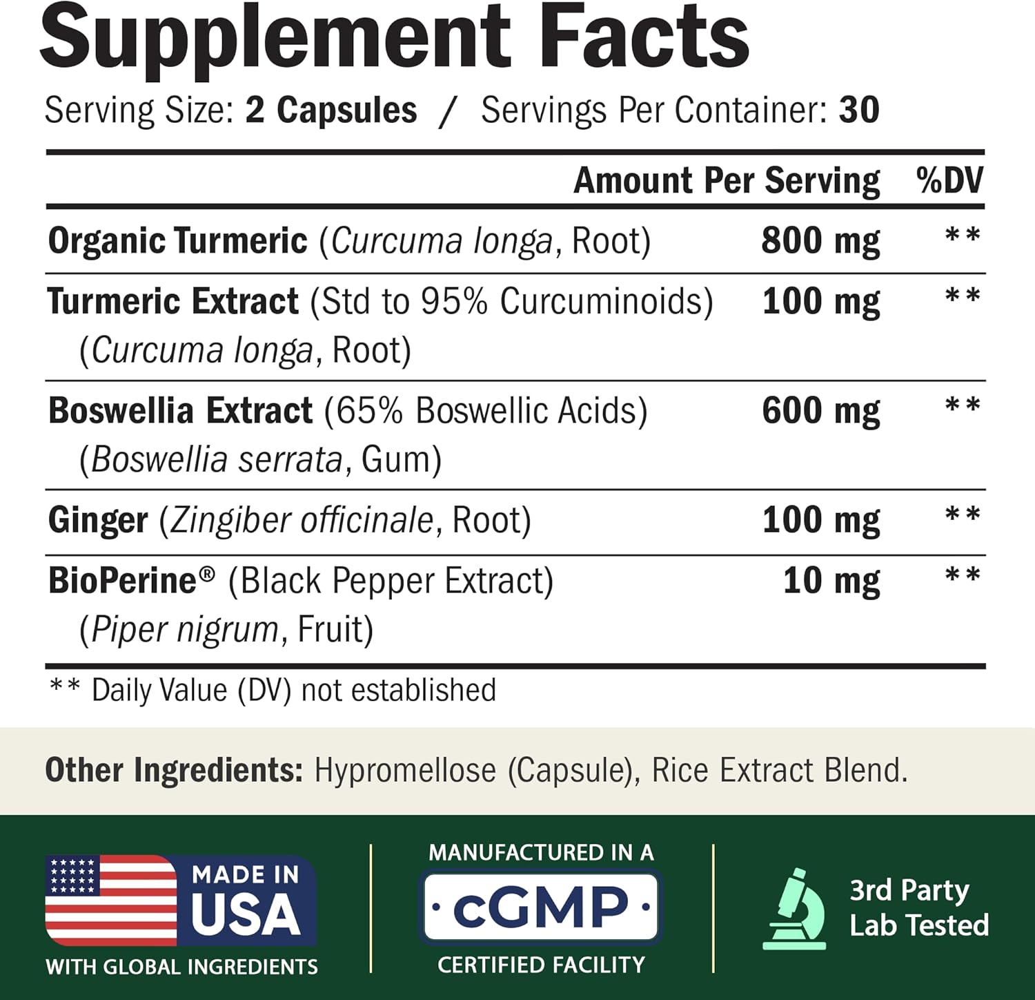 Quality Ingredients, Trusted Sources — Includes high-quality Turmeric Extract (95% Curcuminoids) and Boswellia (65% Boswellic Acids), crafted in the USA from global ingredients for consistent quality. Vegan, gluten-free, and tested for purity.*