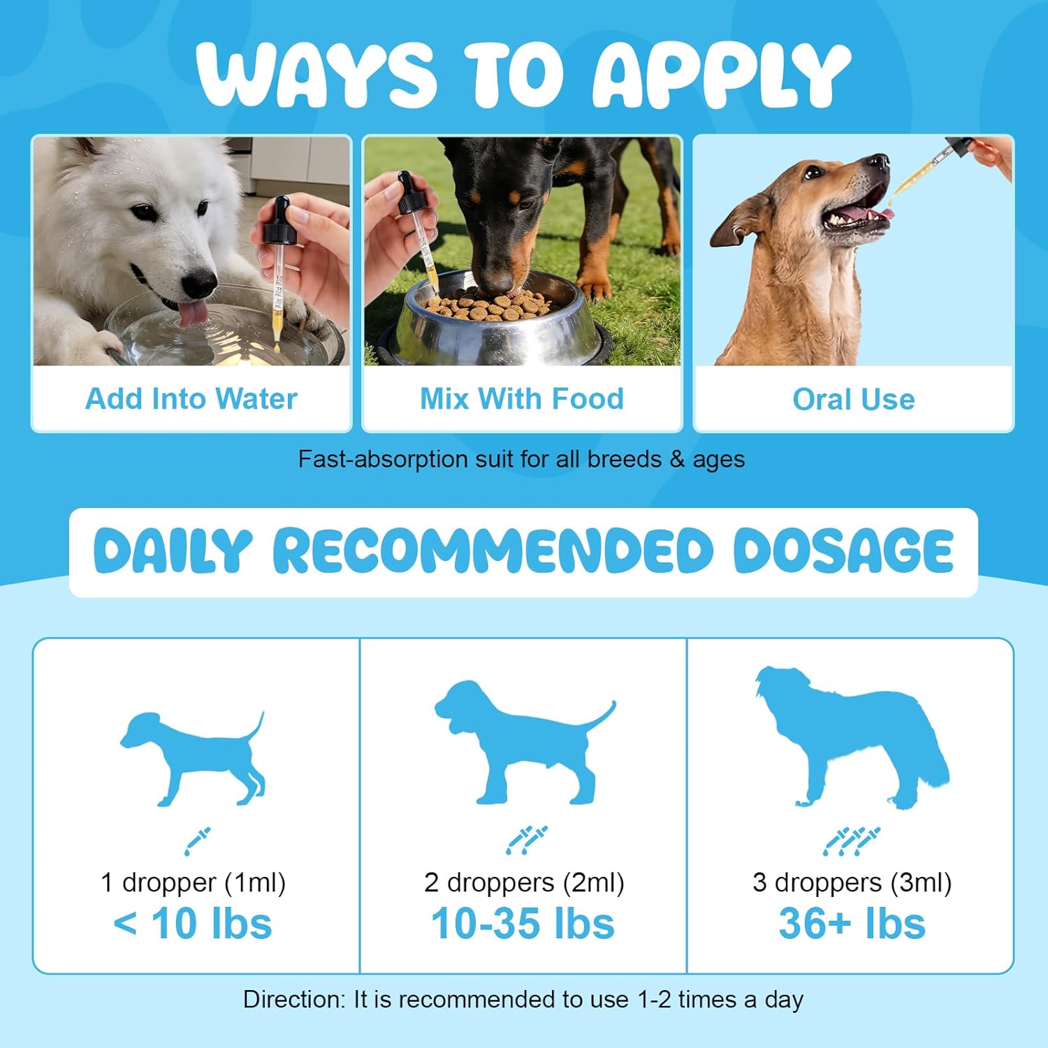 Extremely simple: Use the dropper to add drops directly to meals or water 1-2 times daily. No pills to hide or struggles—takes seconds. Consistent dosing ensures stress-free routines for you and your pet.