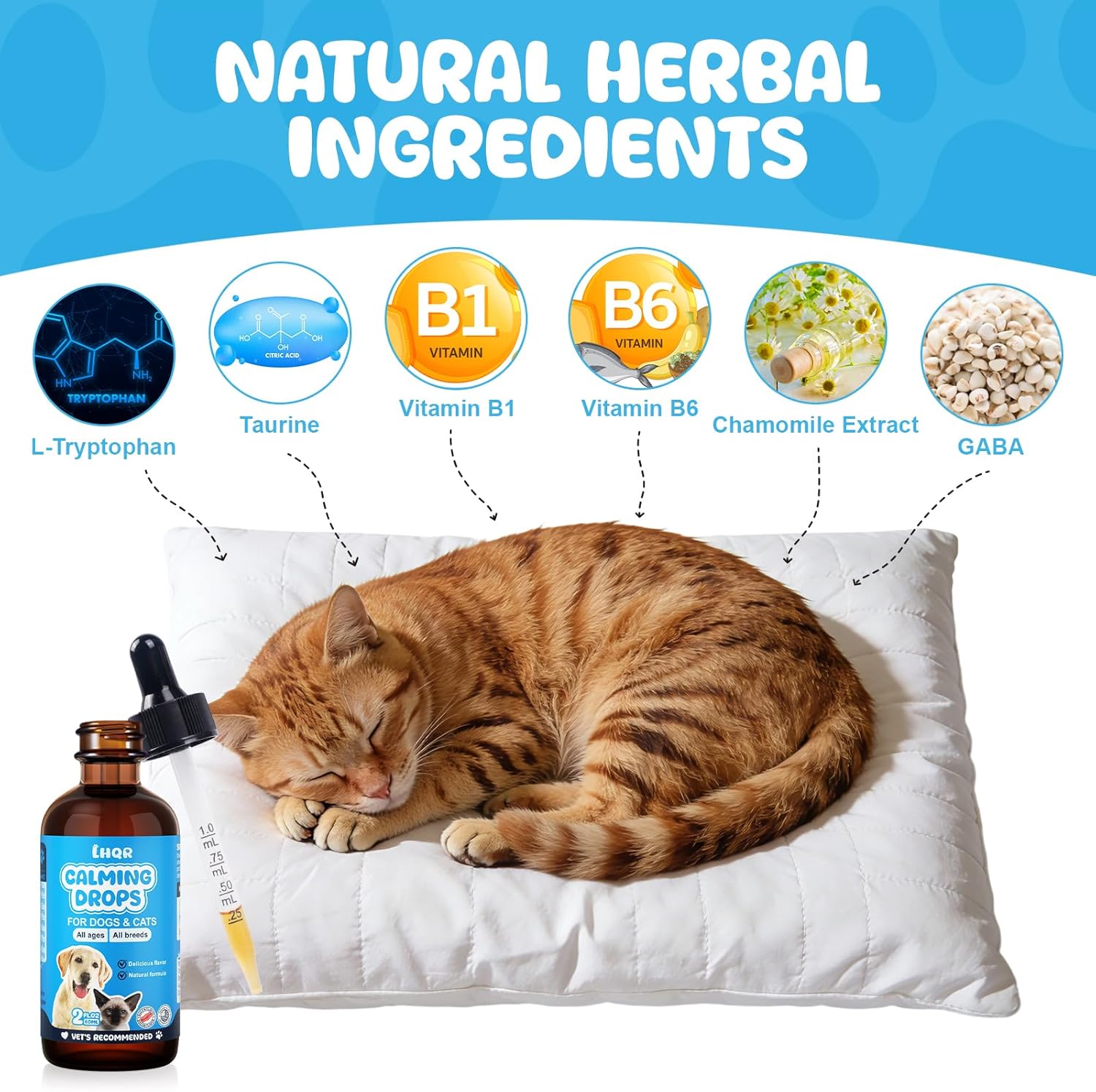 Yes! Our calming drops are vet-reviewed and contain clinically studied doses of natural ingredients like GABA and L-Tryptophan. Free from synthetic sedatives, gluten, and GMOs. Always follow weight-based dosing for optimal safety.
