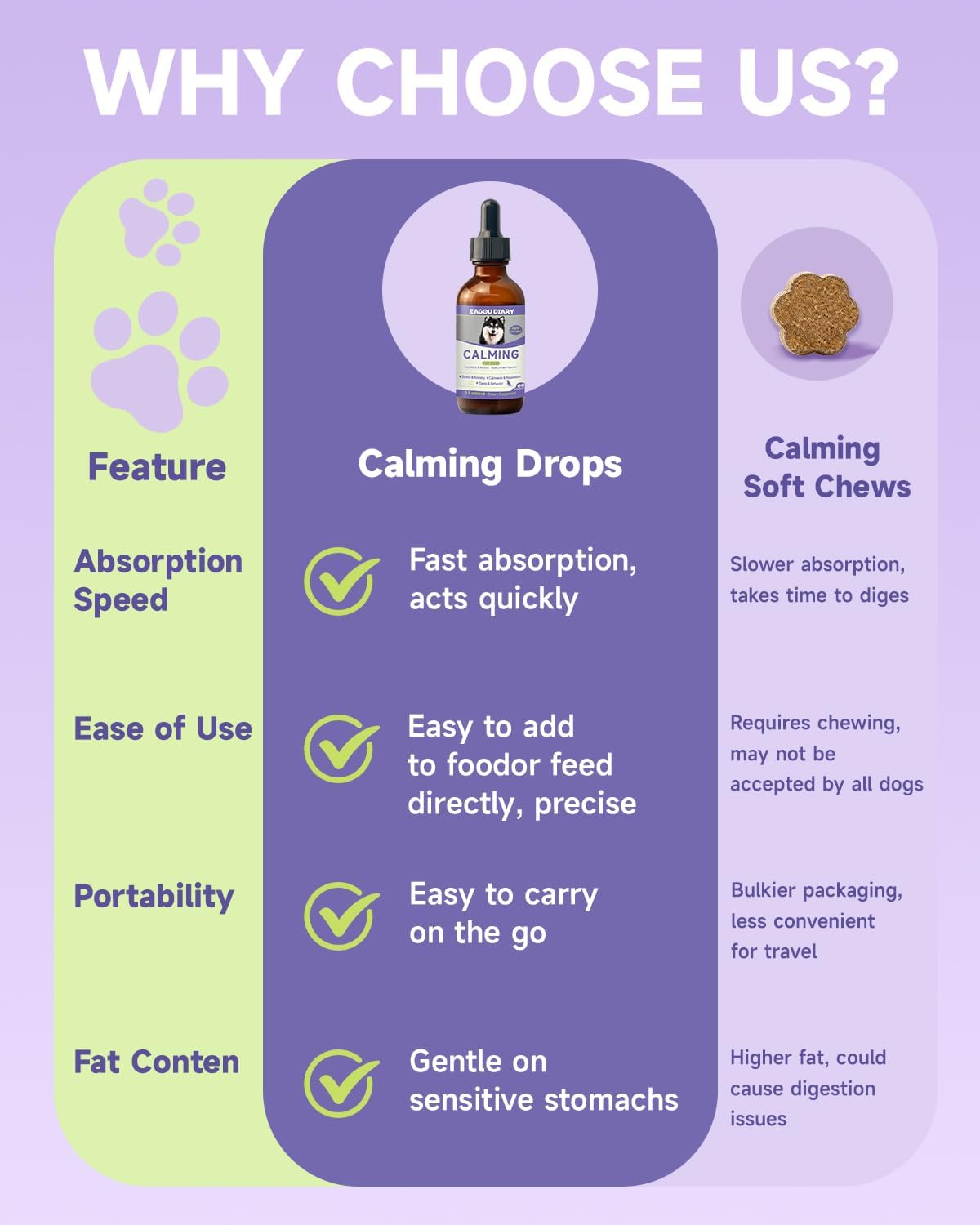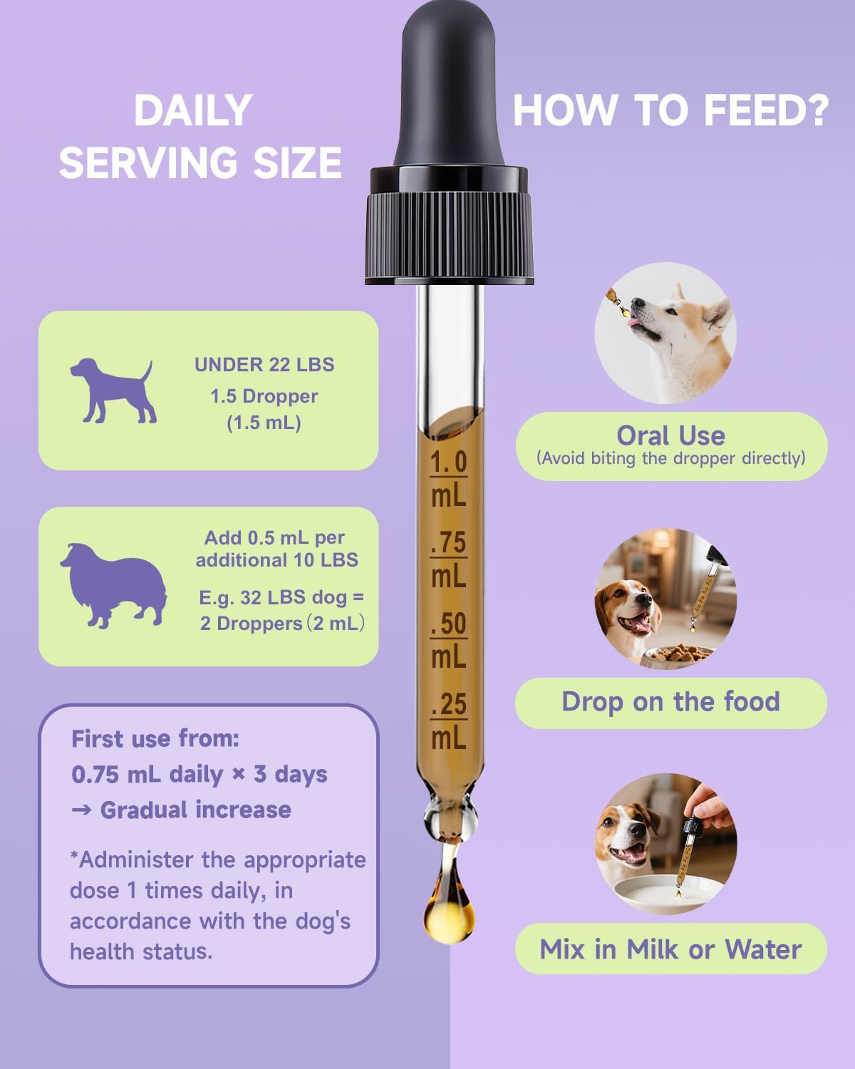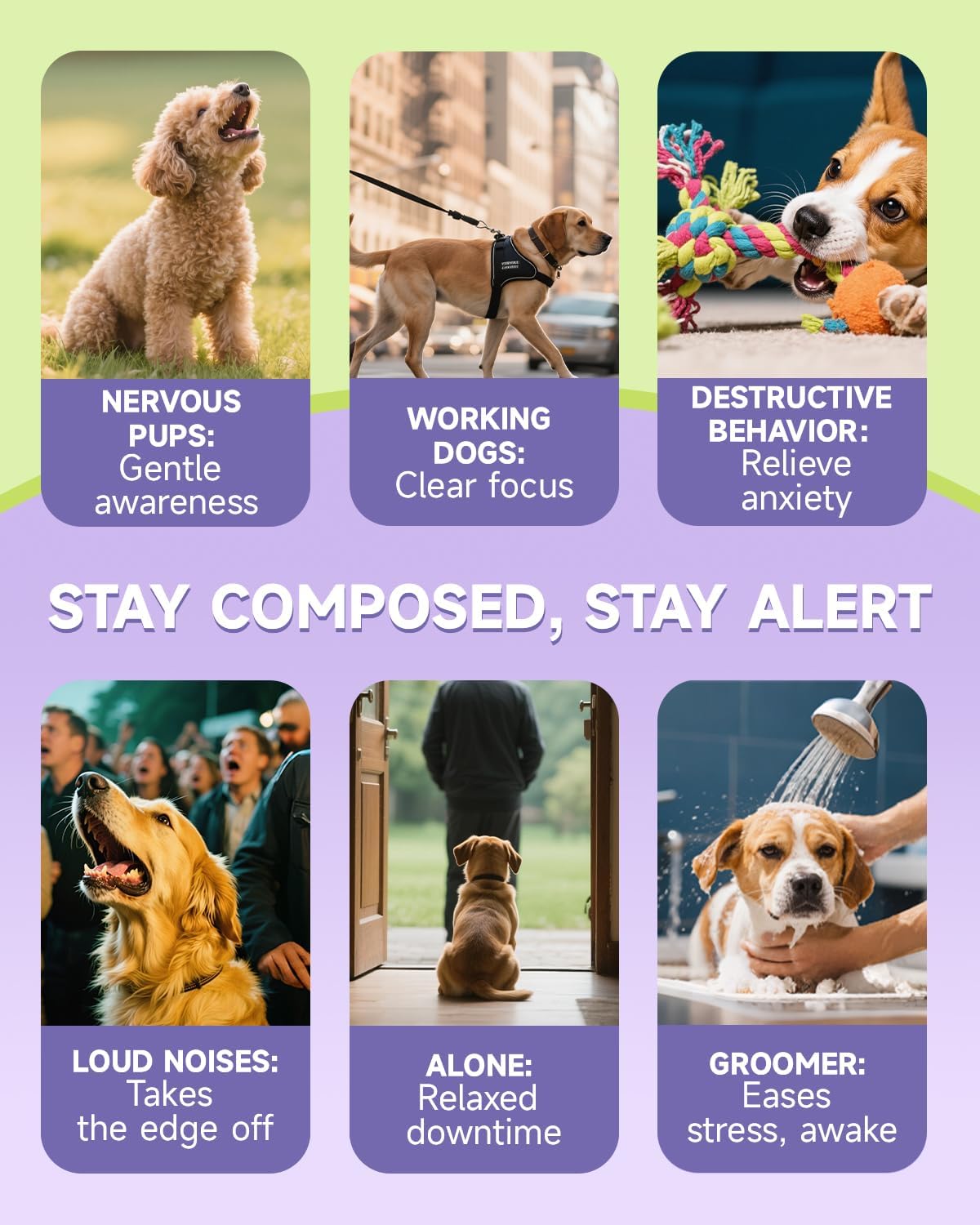 Easy Administration: Unlike powders, tablets, or capsules, our separation anxiety relief for dogs drop formula ensures better absorption and is simple to incorporate into your dog’s daily routine. You can administer the calming treats for dogs directly into your dog’s mouth or mix them with food or water for stress-free supplementation