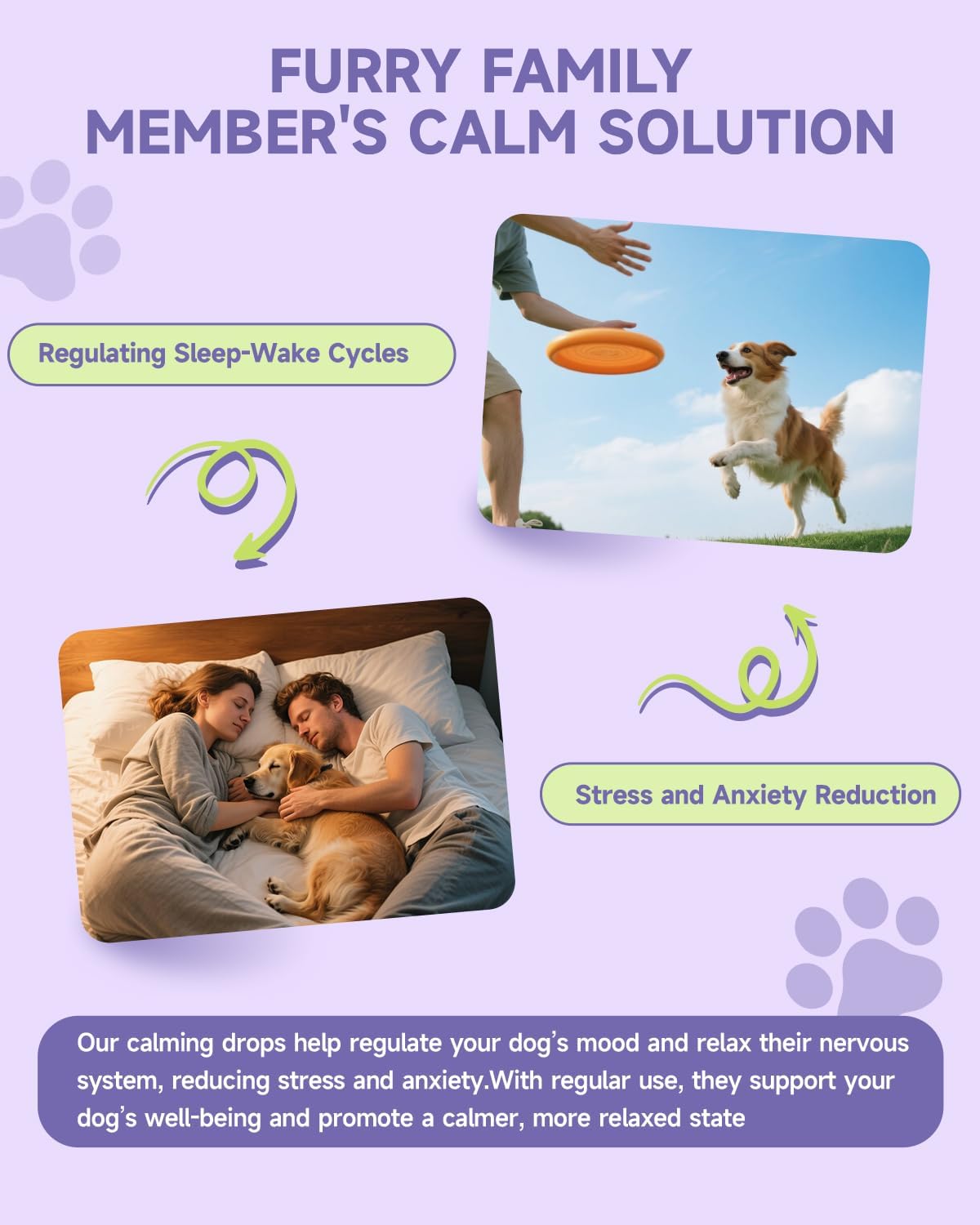 Promotes Calming and Relaxation : Our dog calming drops are meticulously formulated to provide gentle calming and relaxation support for your canine companion. Whether it is the loud noise of fireworks, the rumbling thunder during storms, or the stress of car travel, these calming for dogs can help ease your dog’s anxiety, allowing them to stay calm and relaxed during these challenging situations