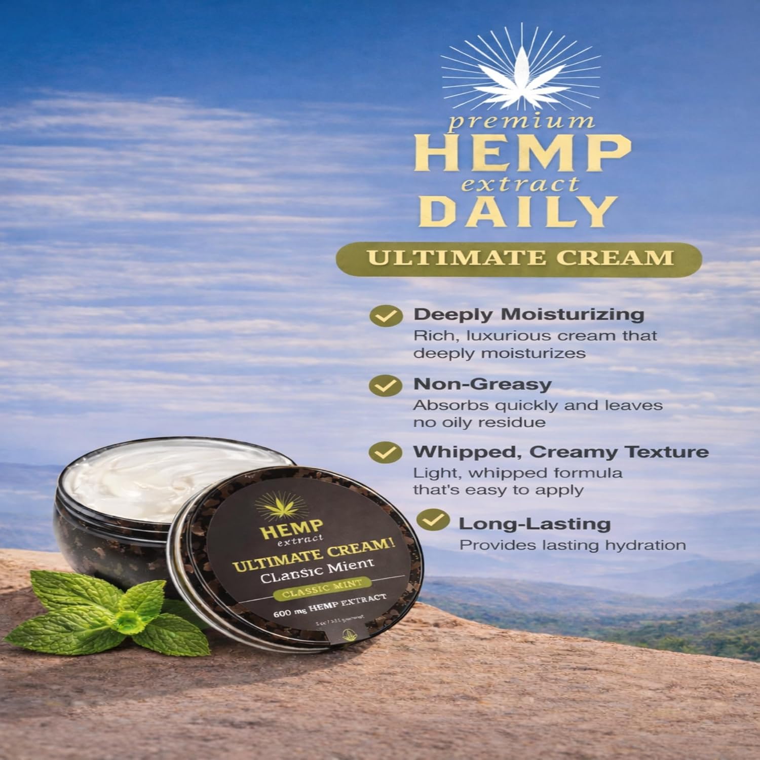 Nutrient-Rich Formulation: Our Premium Hemp Extract Oil formula is enriched with essential skin-nourishing ingredients and natural oils, promoting overall well-being and comfort. Our Premium Hemp Extract Daily Intensive body cream is focused on wellness. With its deep penetrating formulation, our fast-absorbing premium hemp extract cream moisturizes skin while promoting a soothing effect to promote a comforting relaxed state.