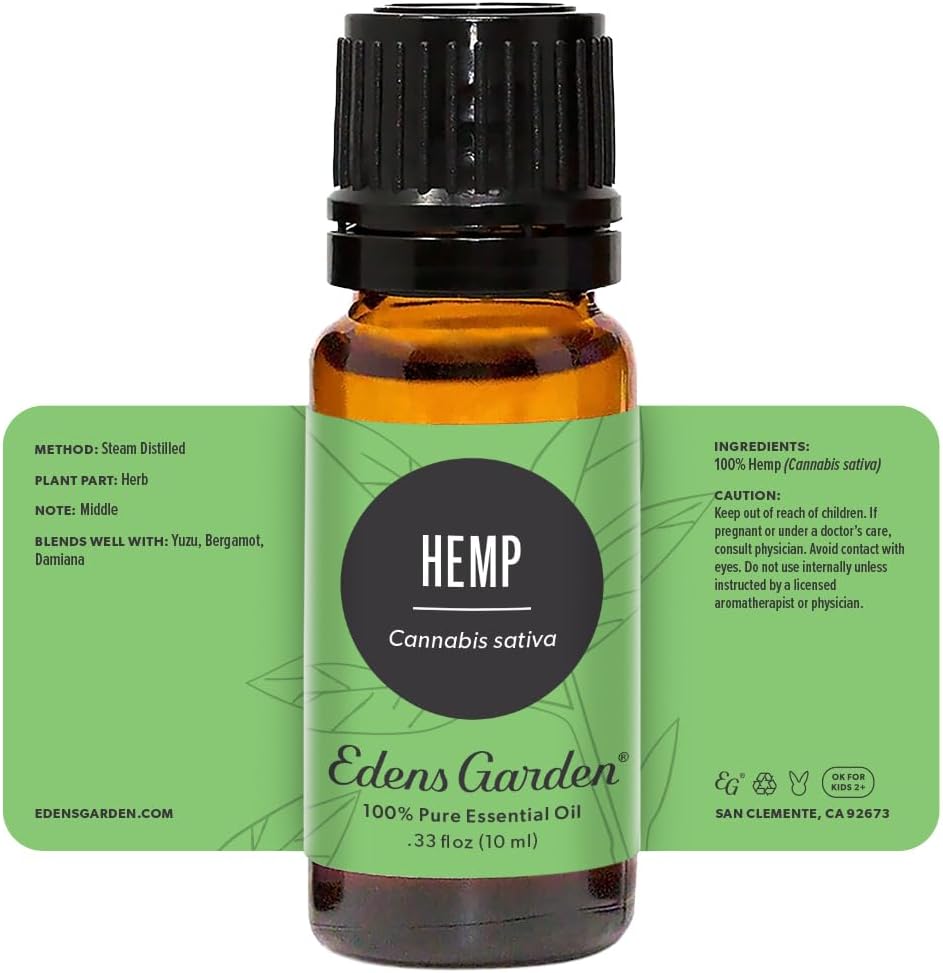 Edens Garden Hemp Essential Oil- 100% Pure Premium Grade, Undiluted, Natural, Therapeutic, Aromatherapy, The Best for Diffuser, Skin, Humidifiers, Kid Safe 10 ml (.33 fl oz)