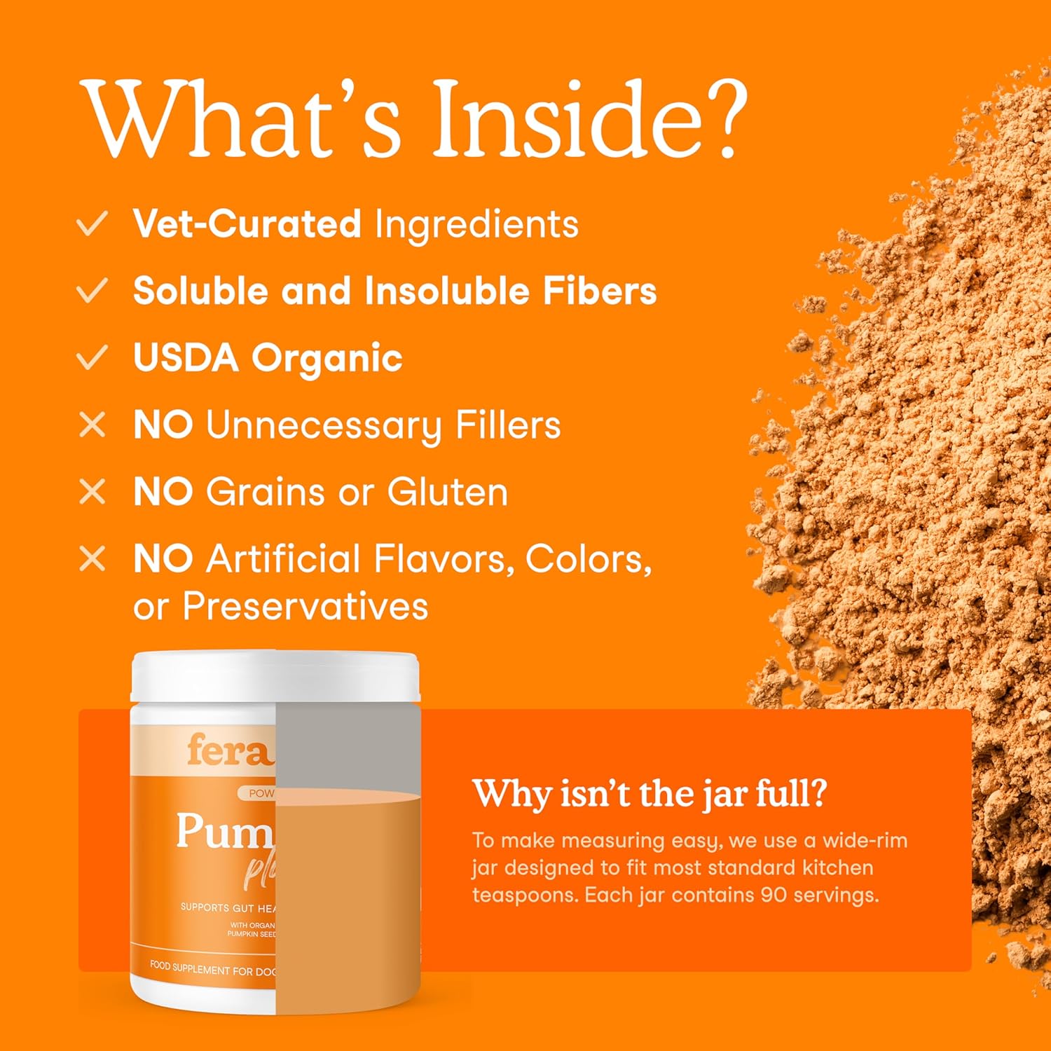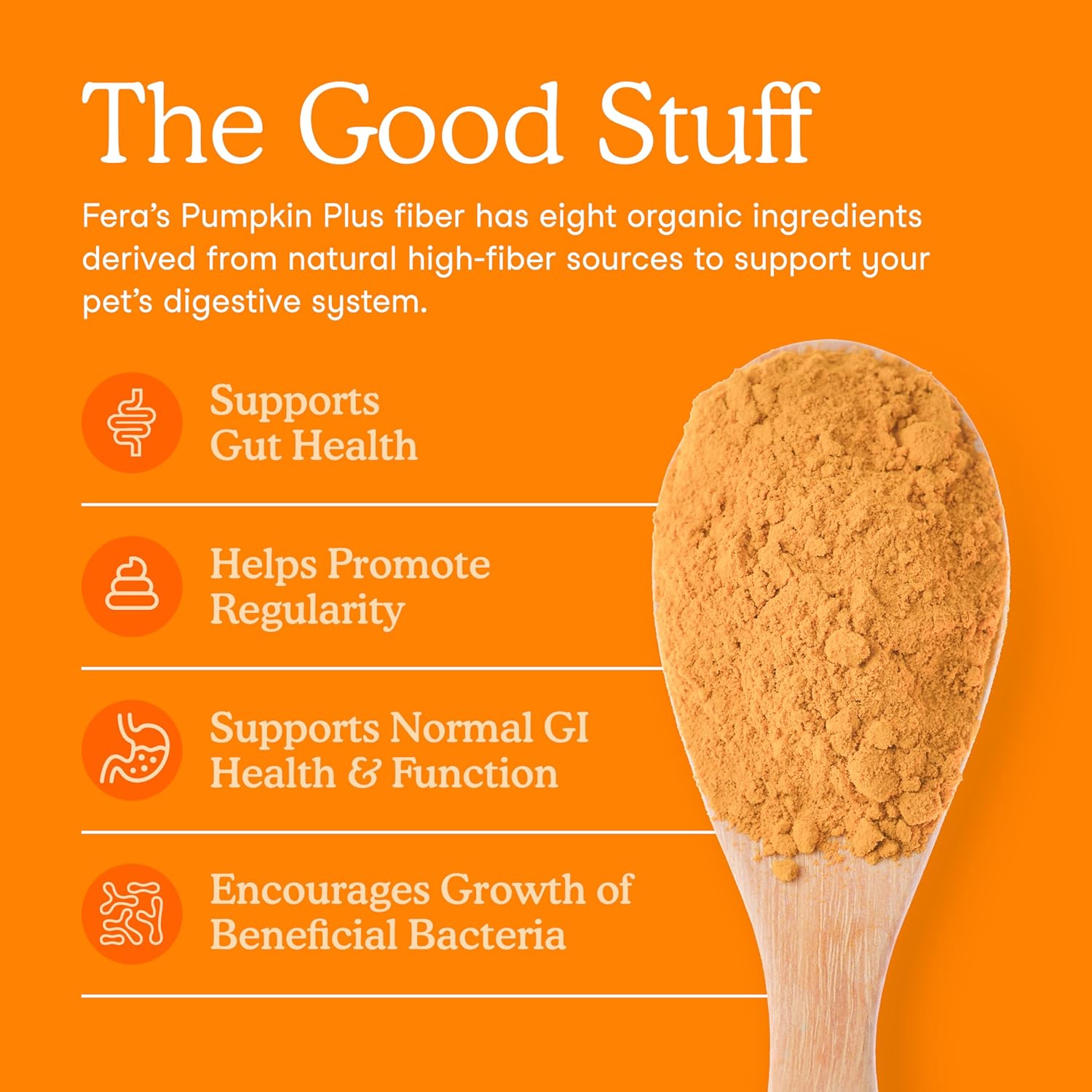 Organic fiber powder: Fera’s fiber supplement powder is packed with 7 organic ingredients to help with regularity and balance the digestive system; our pumpkin for dogs and cats is rich in insoluble fiber from flax seed and coconut for the heart and gut