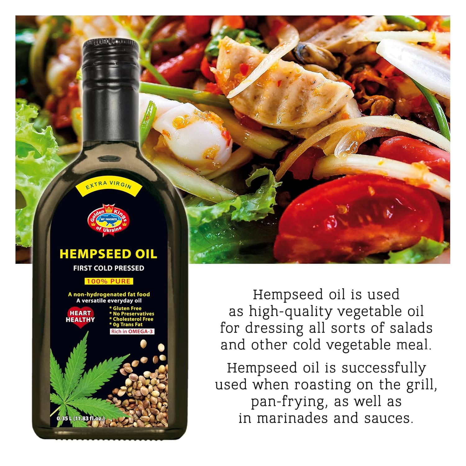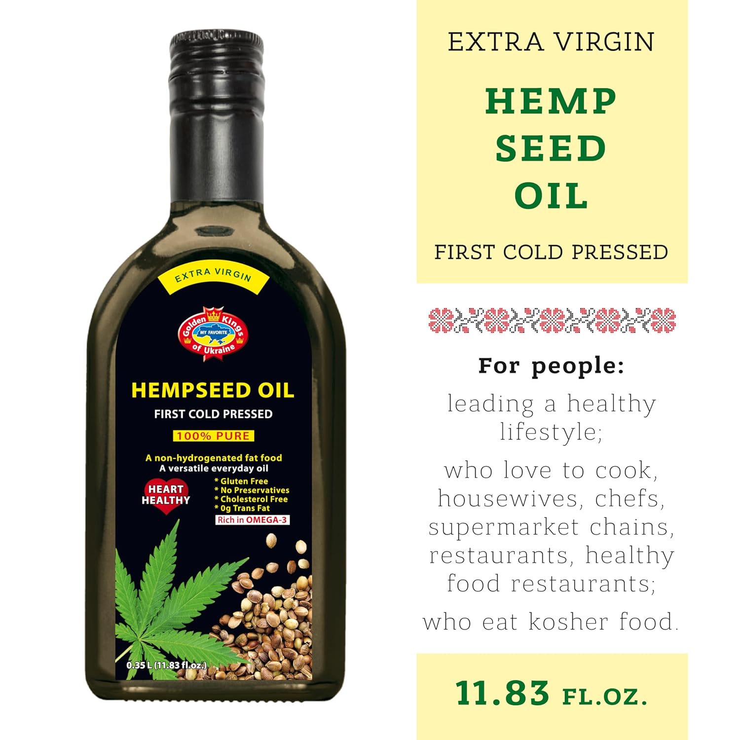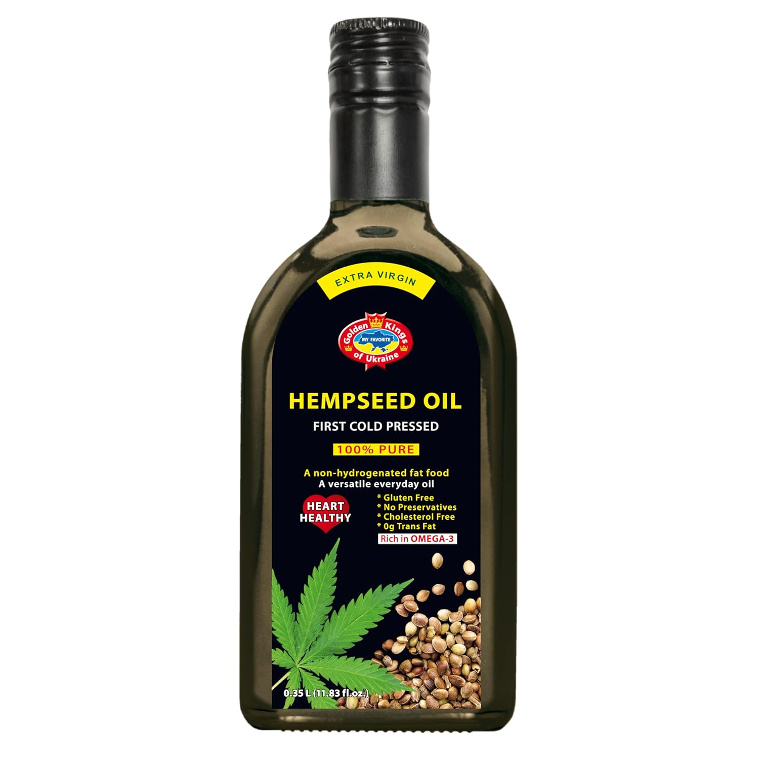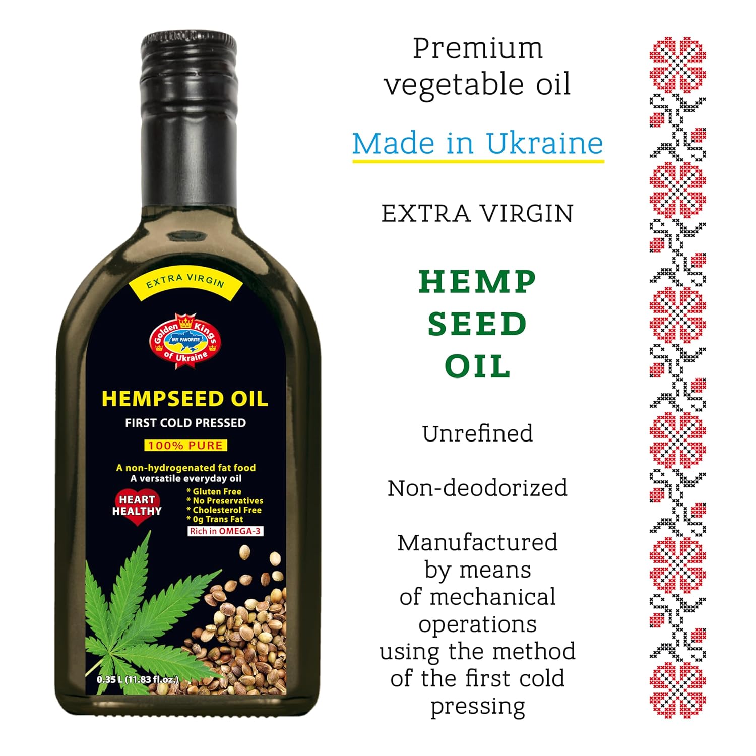 Golden Kings of Ukraine Pure Hemp Seed Cooking Oil – Extra Virgin Cold Pressed Oil – Unrefined and Non-Deodorized 11.83 OZ