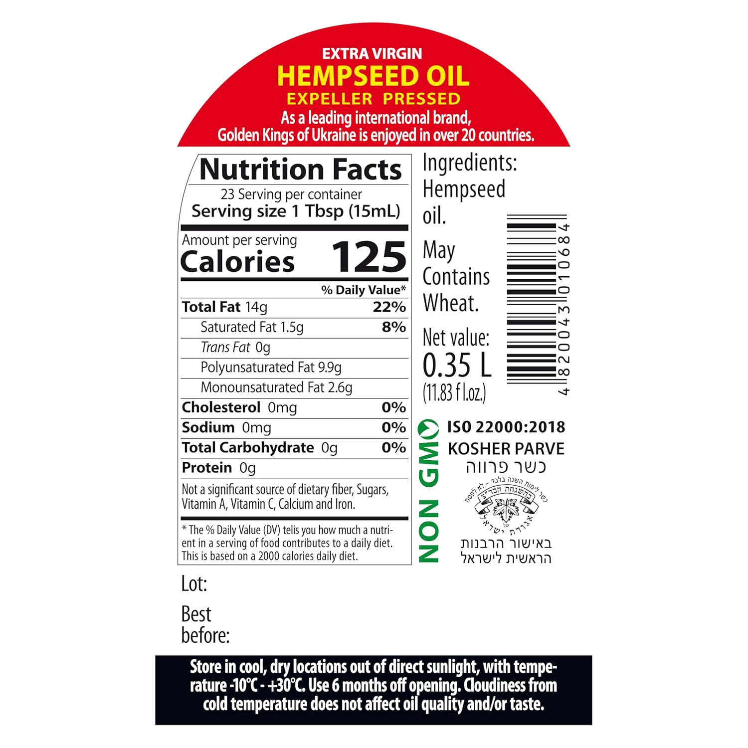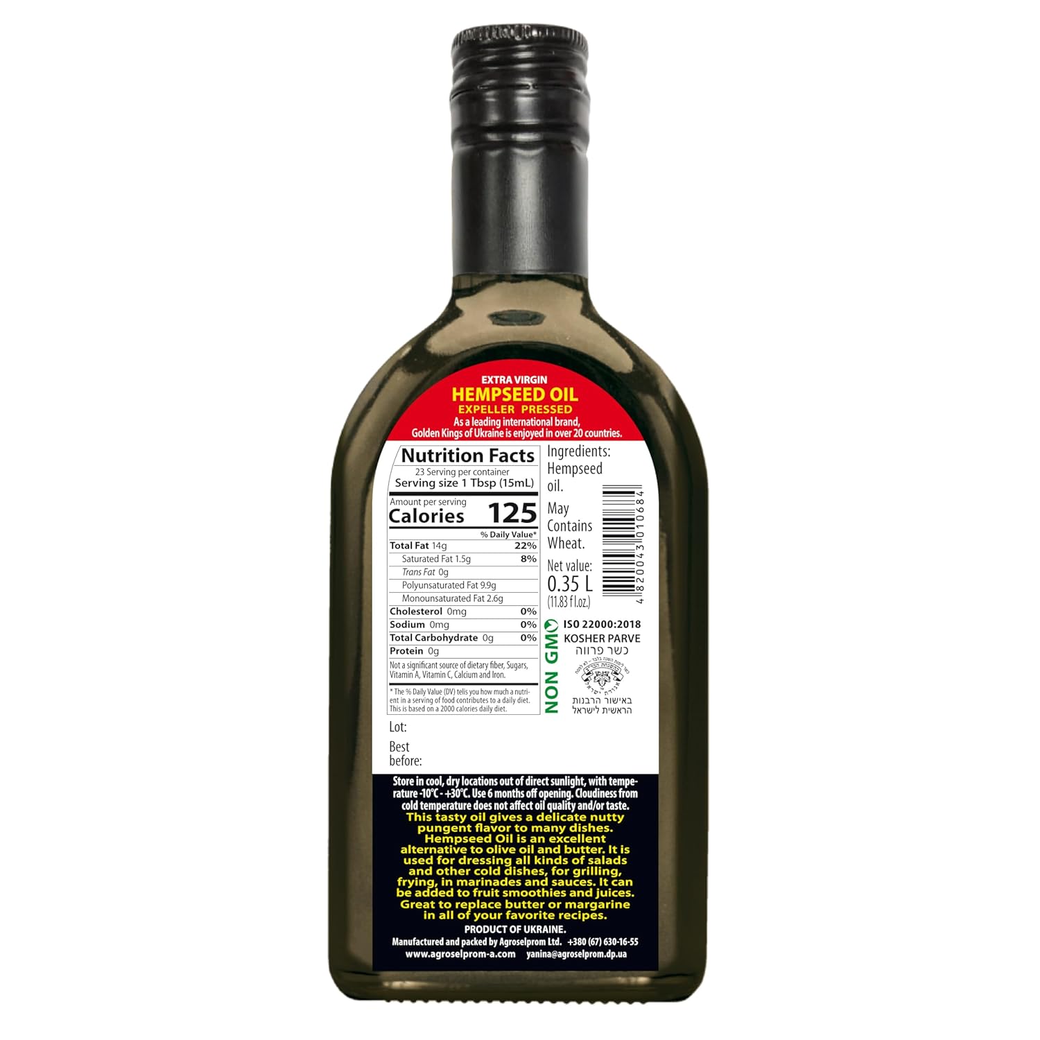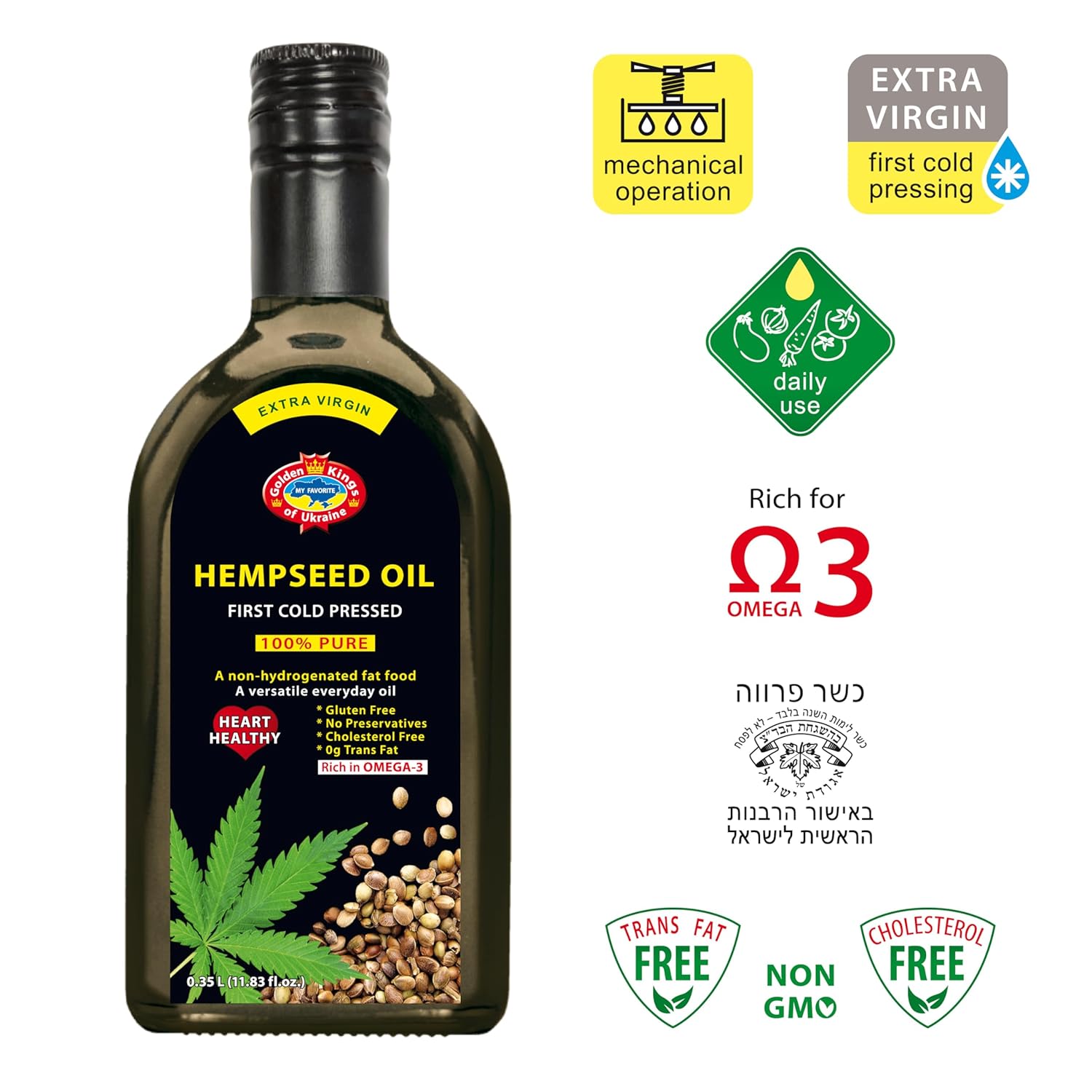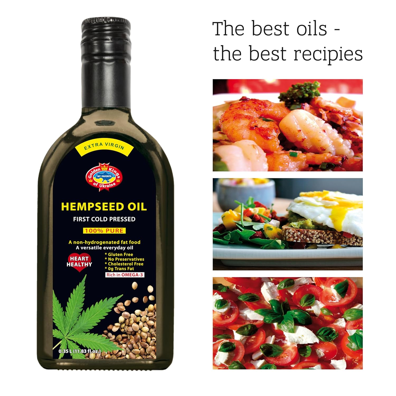 Golden Kings of Ukraine Pure Hemp Seed Cooking Oil – Extra Virgin Cold Pressed Oil – Unrefined and Non-Deodorized 11.83 OZ
