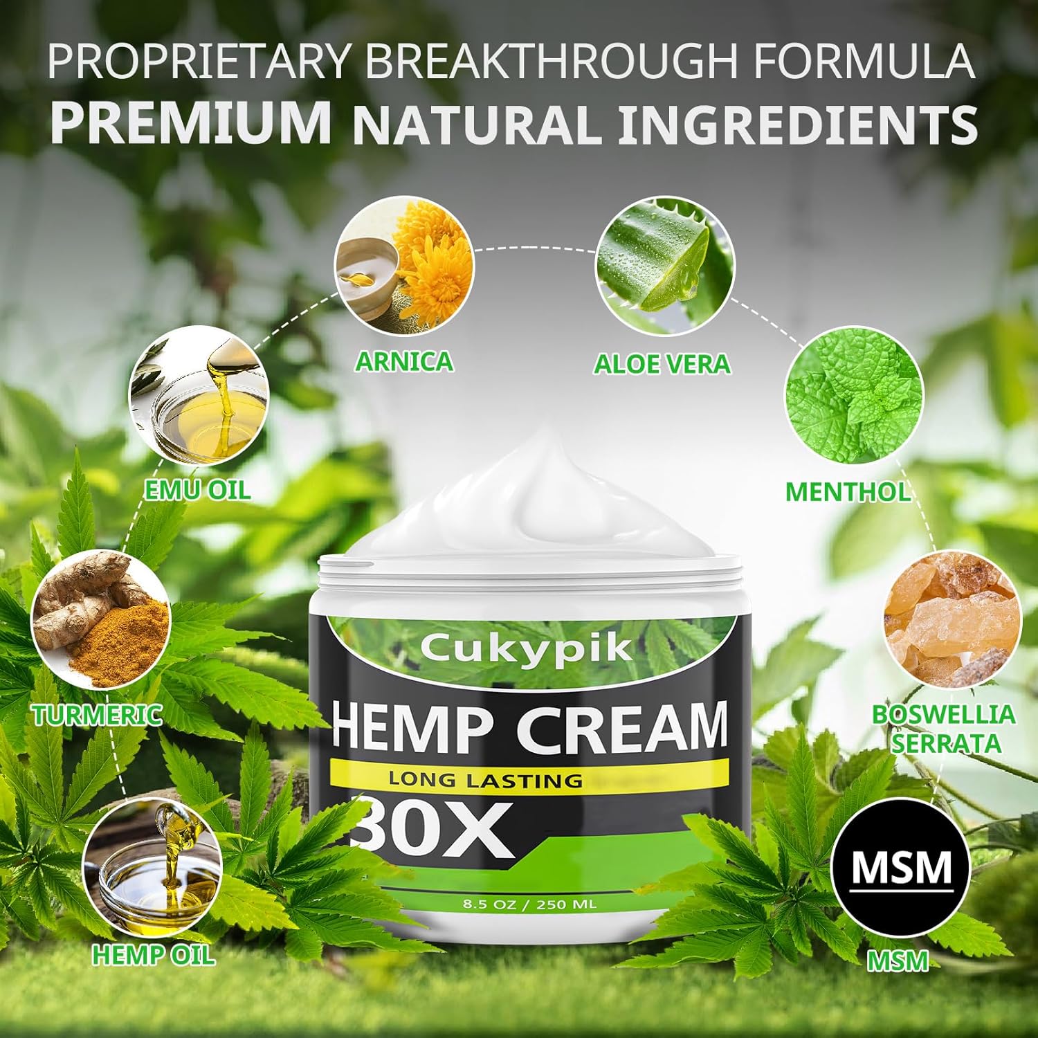 Hemp Cream 8.5oz, Natural Soothing Topical Cream, with Arnica,MSM, Turmeric, Menthol, Aloe