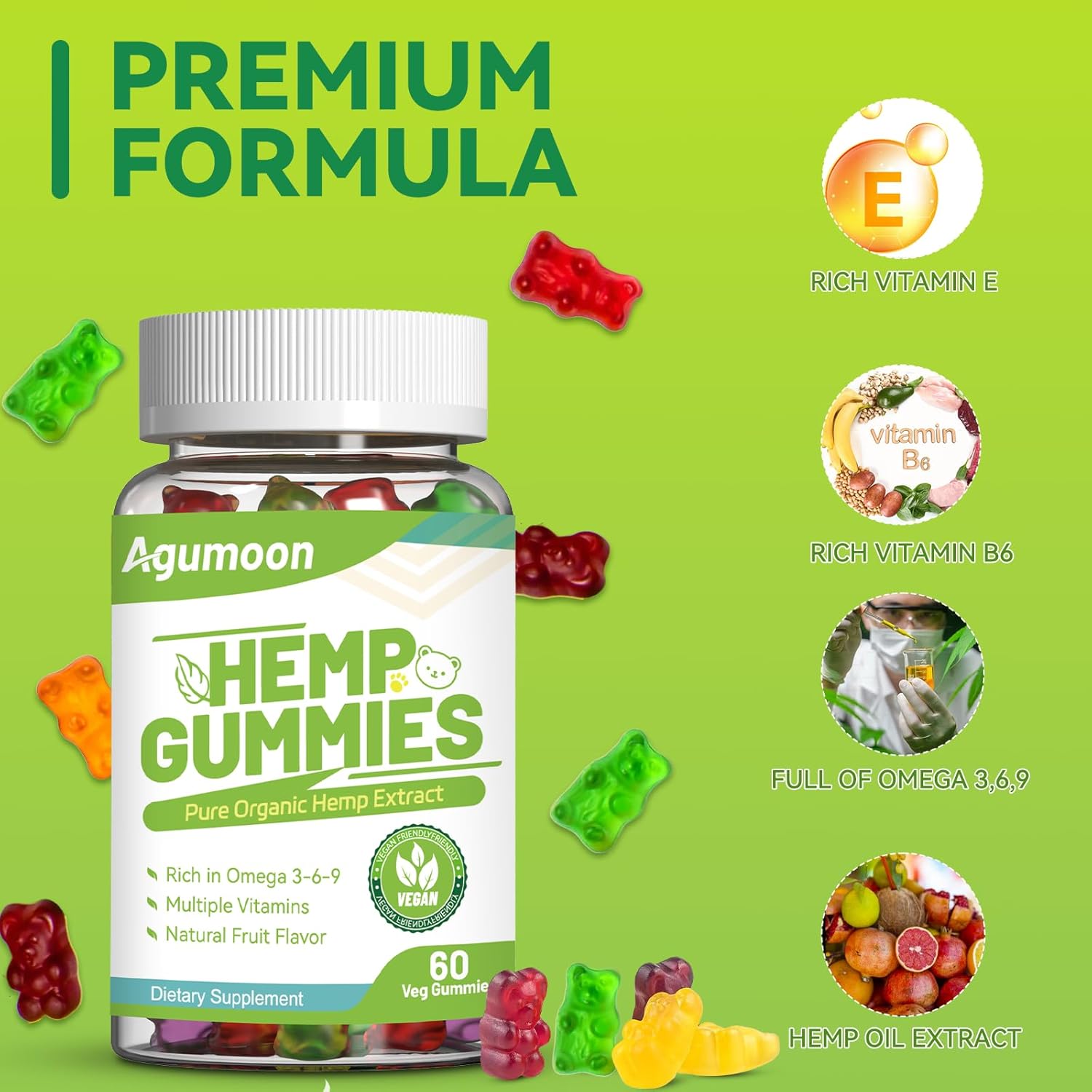 Premium Hemp Gummies: AGUMOON hemp gummies are formulated with effective ingredients and nutrition derived from natural plants, offering a safe and natural way to help combat bad moods. Each chewy piece is formulated to re-energize you.