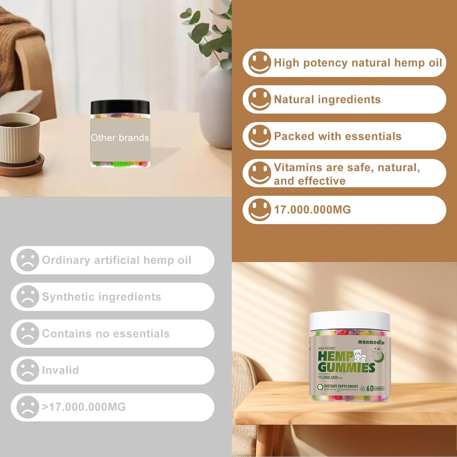 Delicious and powerful – Natural Hemp oil extract infused gummies, are made with all-natural ingredients, deliver powerful health supplement in a delicious and convenient form,Indulge your taste buds with the delicious flavor of our hemp gummies, making your daily health routine a truly enjoyable experience.