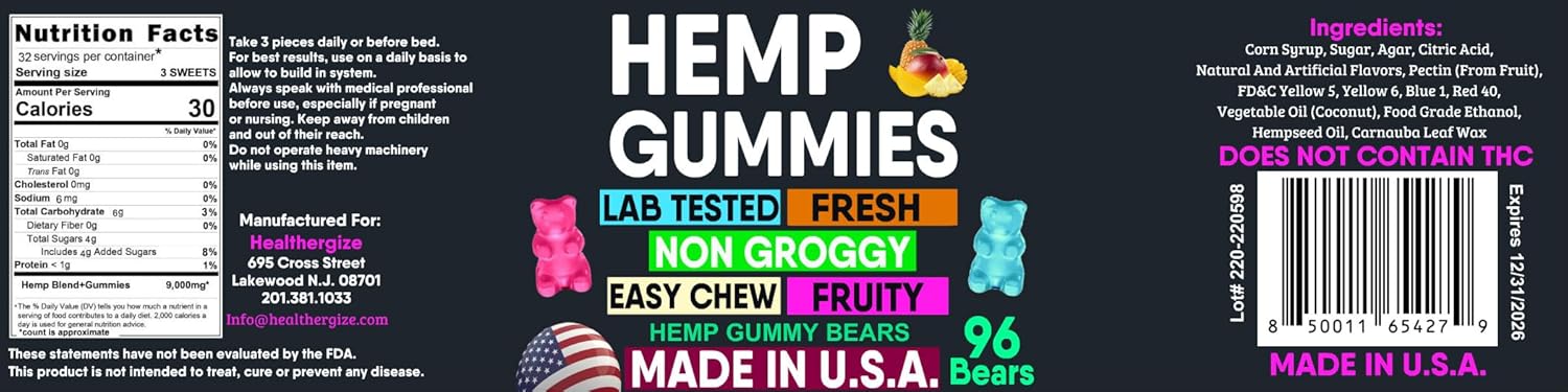 PROUDLY USA MADE-Our hemp oil gummies are proudly made in the USA ensuring quility and freshness, with high standards, giving you peace of mind for a quality product