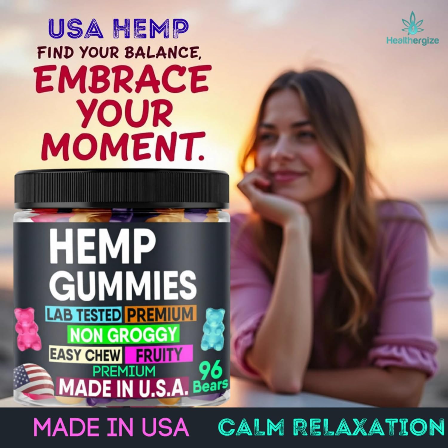 MADE IN USA LAB TESTED HEMP GUMMIES FOR NIGHT OR DAY USE-EMBRACE YOUR CALM!