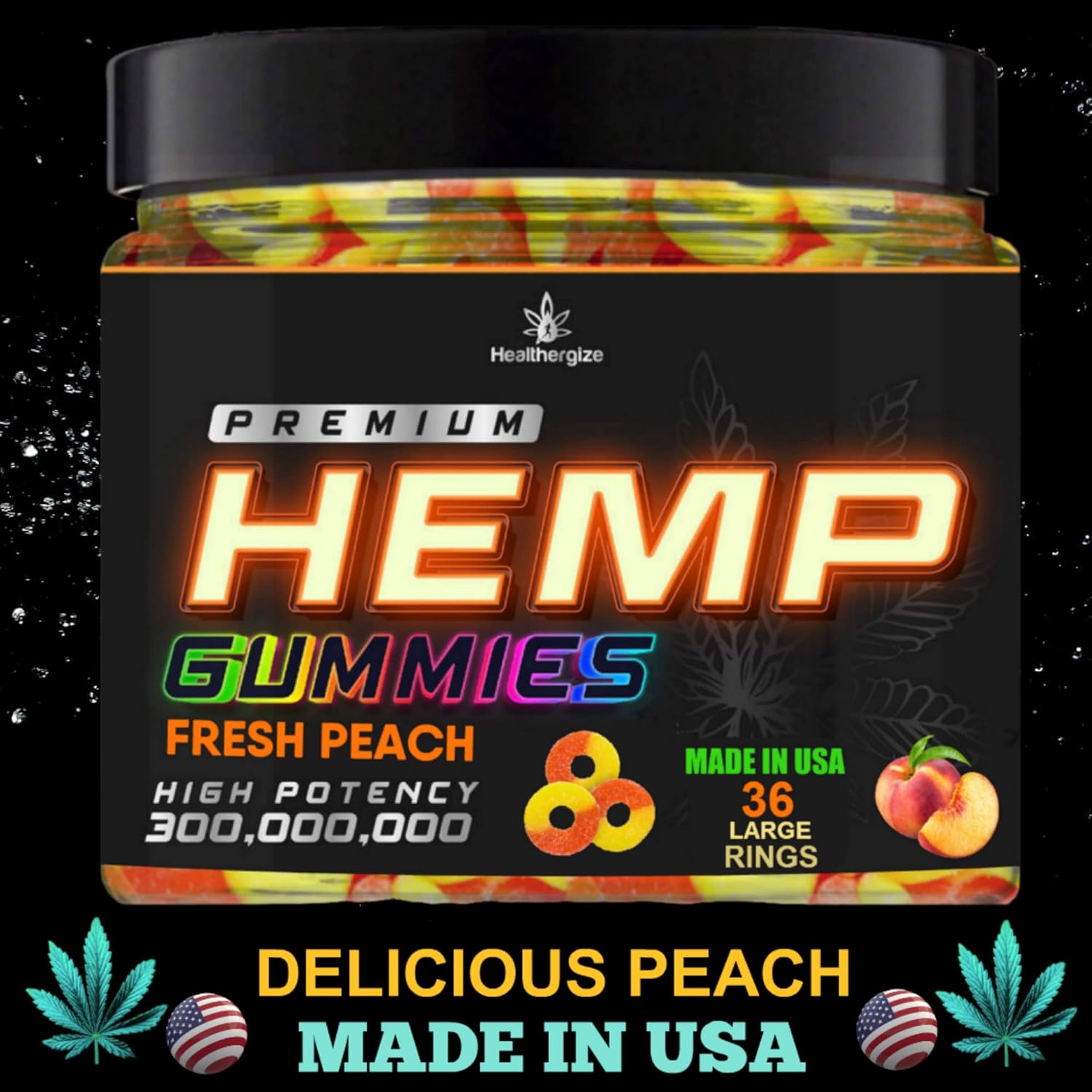 Premium hemp gummies in Peach Flavored Rings gummy bears great for daily happy mood or take before bed for high quality rest and soothing night