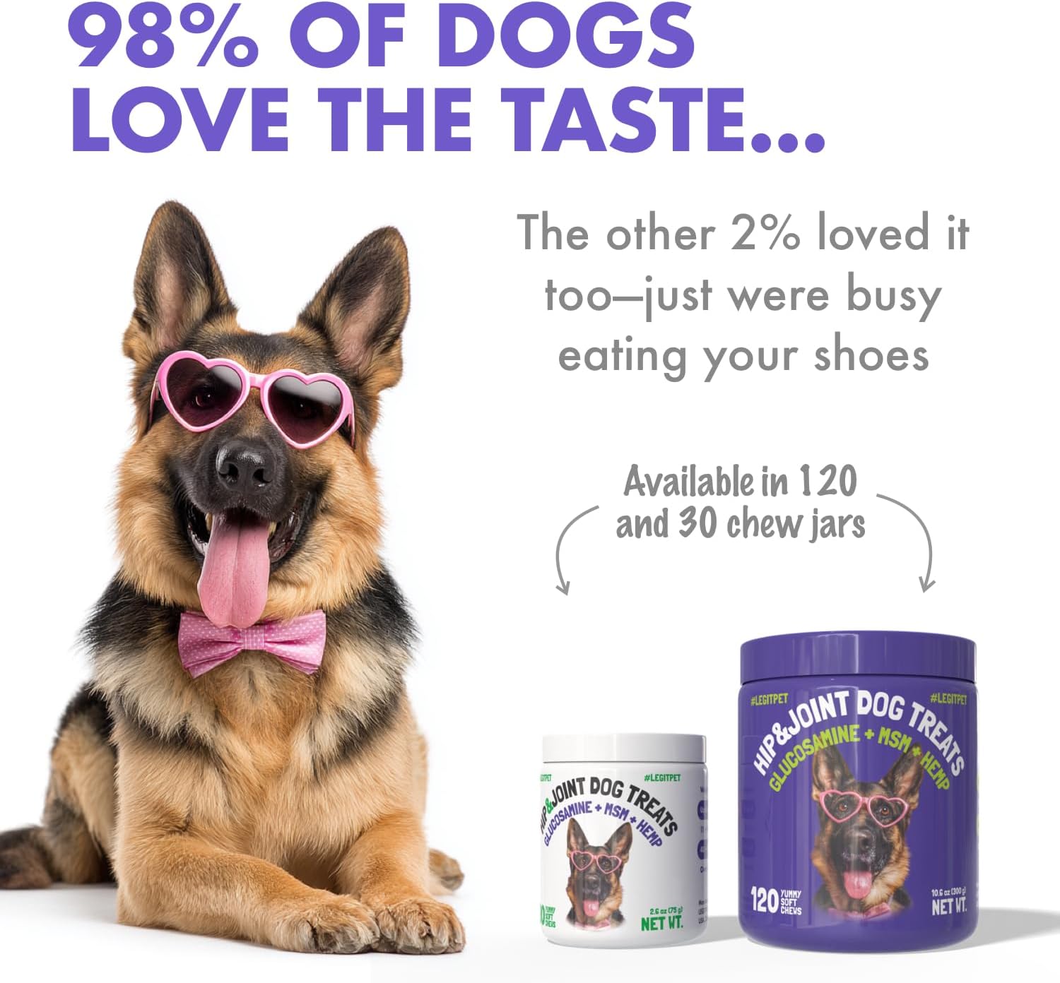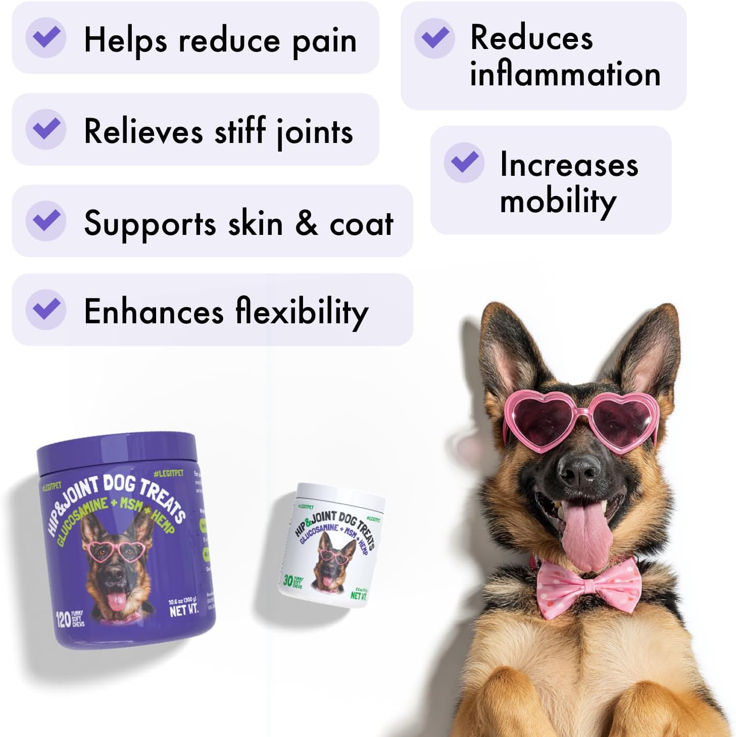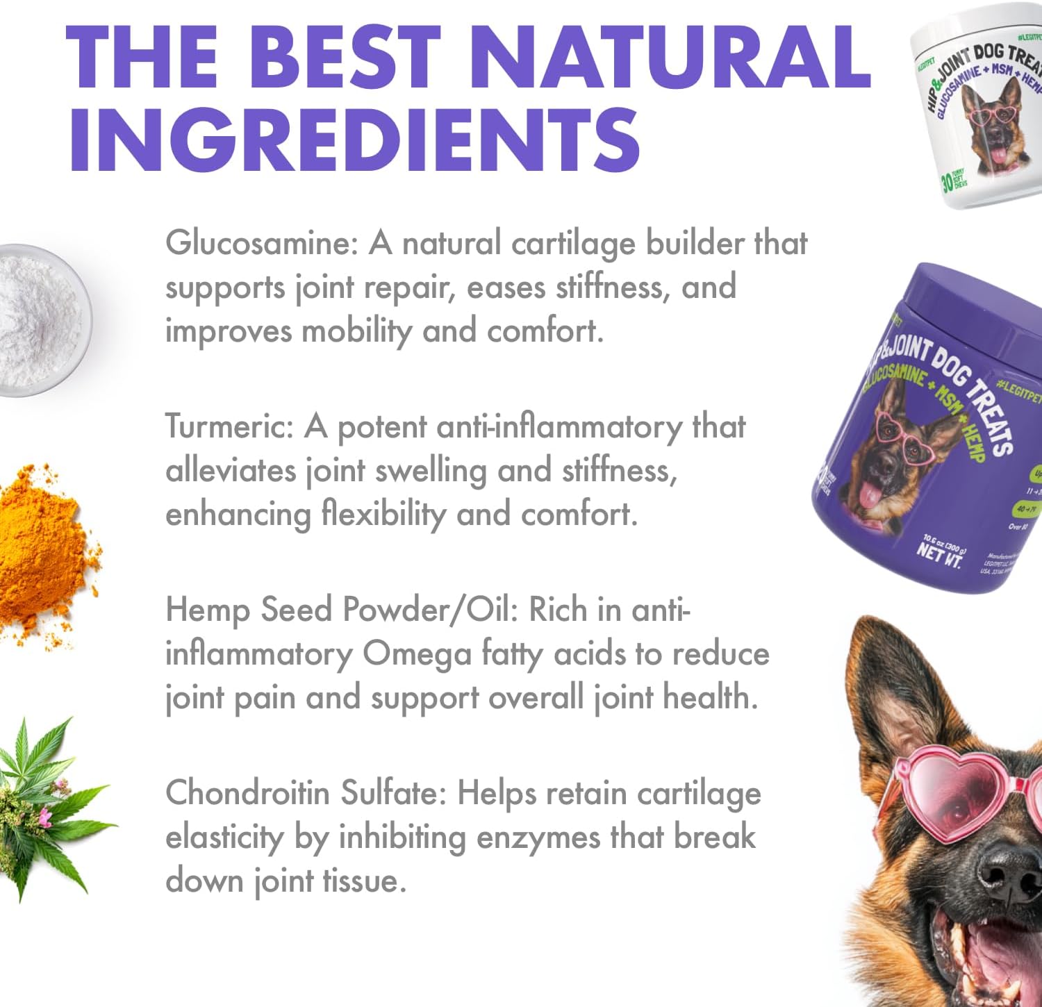 LEGITPET’S Hip And Joint Chews For Dogs will not make your pet sick unlike other brands. We use USA 🇺🇸 made ingredients: organic hemp oil, MSM, chondroitin & turmeric which together work as a pain relief for dogs + hip and joint supplement