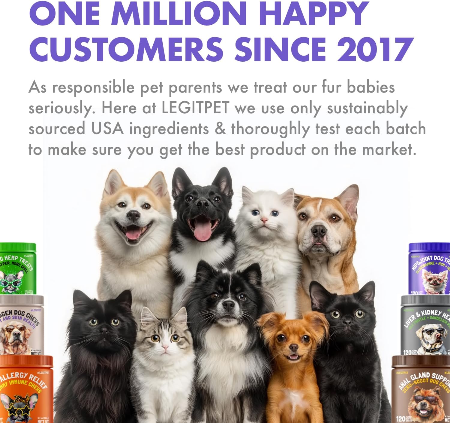Here at LEGITPET we use only sustainably sourced USA ingredients & thoroughly test each batch to make sure you get the best product on the market