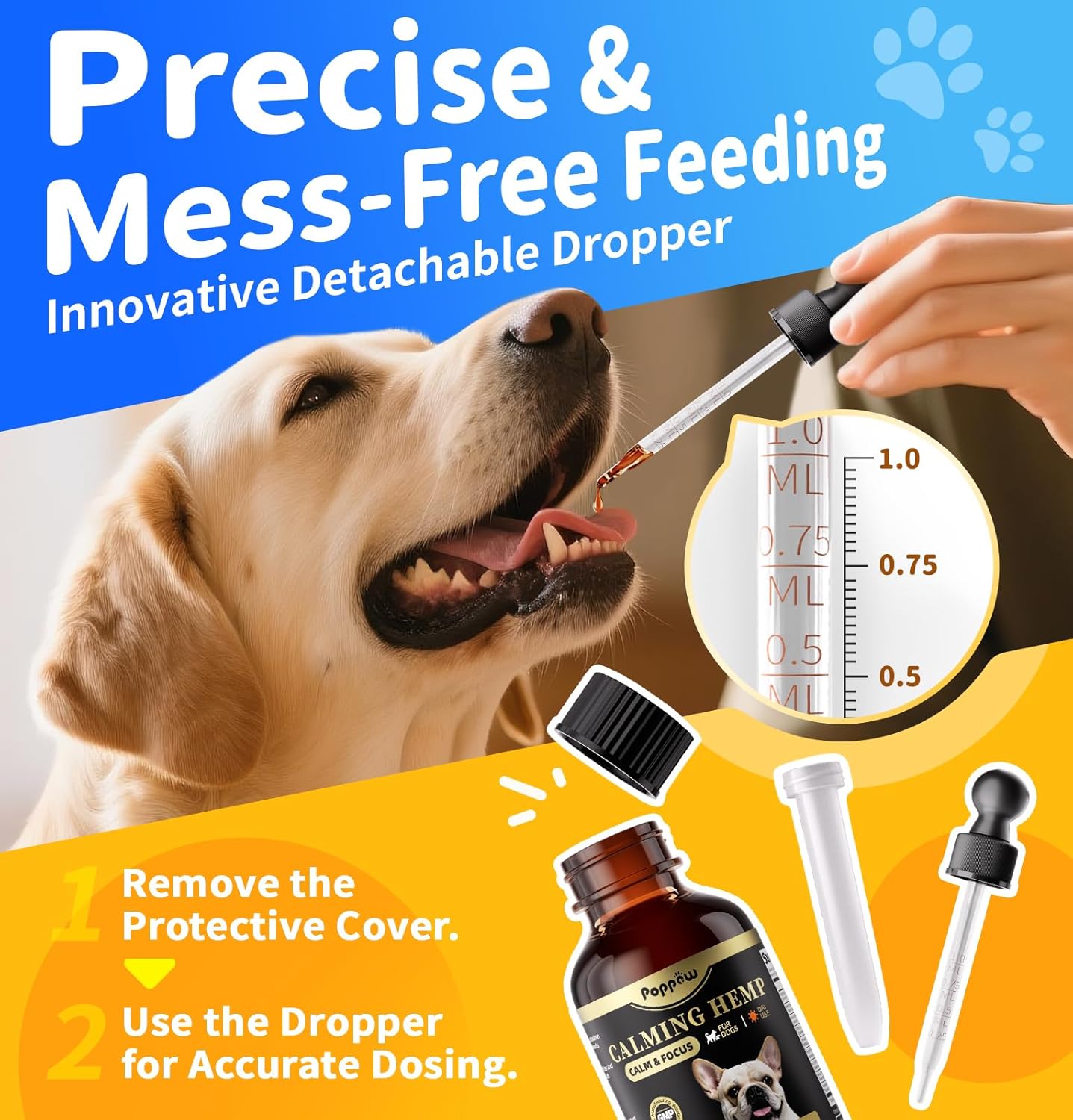 Irresistible Flavors, Stress-Free Dosing: With bacon or chicken flavors, even picky eaters love these calming treats for dogs. The dropper ensures accurate dosing, so your furry friend gets just the right amount of anxiety relief for dogs—day or night!