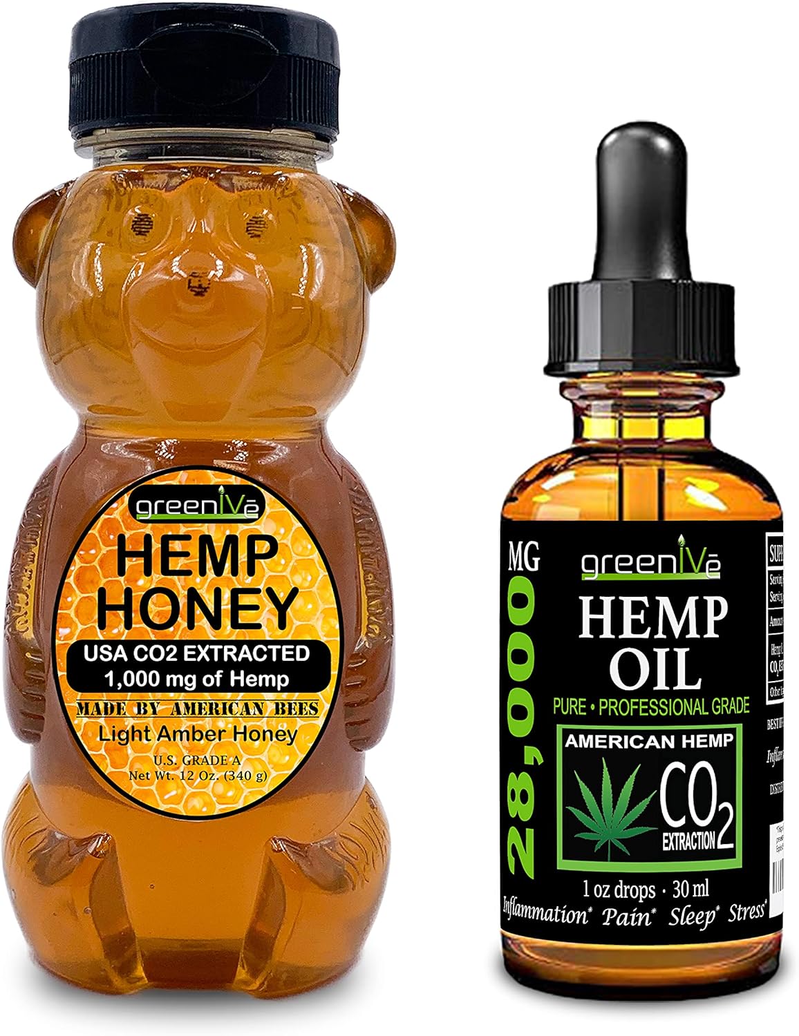 Save over 12% with GreenIVe’s Hemp Oil 28,000mg + Hemp Honey 1,000mg bundle