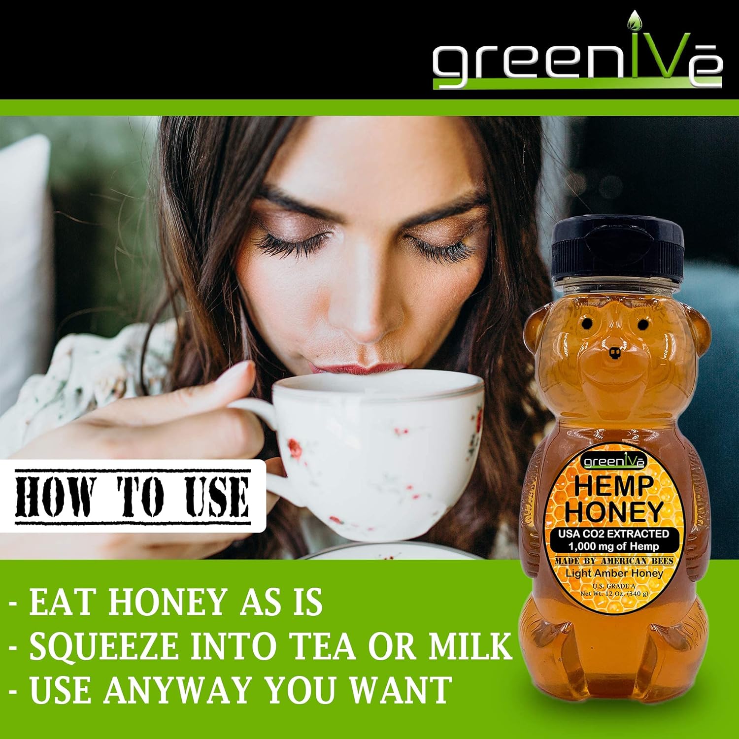 USES: With easy to use packaging you will surely find the right product with GreenIVe. Each glass tincture is conveniently marked with the appropriate serving size. Simply place the drops directly under your tongue and leave for 30+ seconds and enjoy the results!