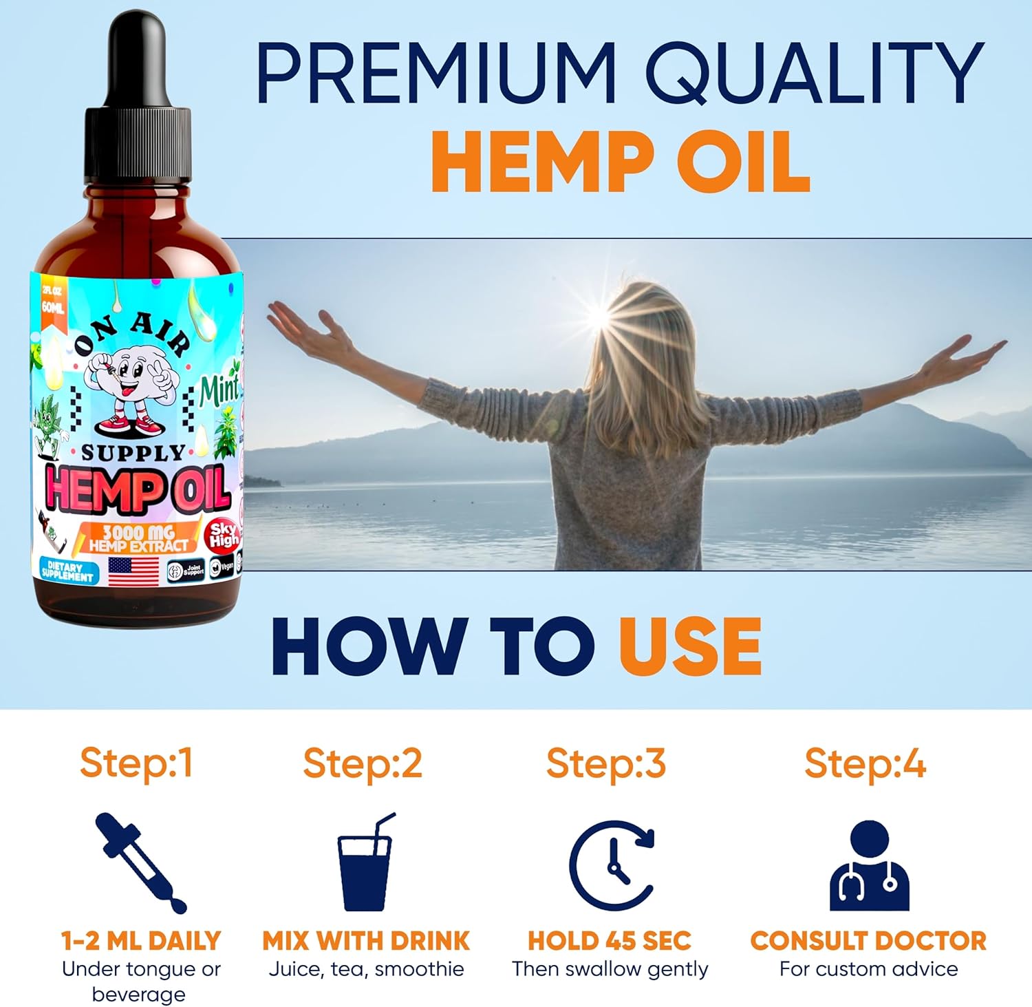 Sealed For Quality & Value – Crafted In FDA-Registered Facilities In The USA To Ensure High Safety And Efficacy Standards. Each Pack 60 ML Offers A Generous Supply Of Premium Hemp Oil, Sealed For Freshness.