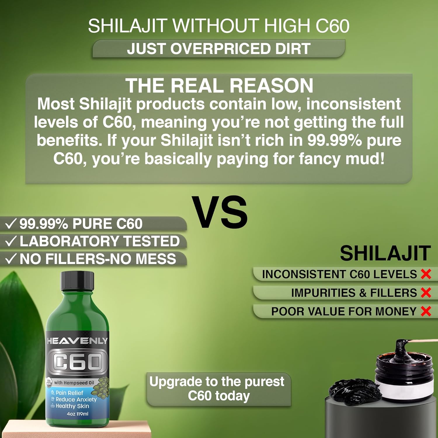 99.99% Pure Carbon 60 Formula: Experience the unparalleled purity of solvent-free carbon 60, carefully crafted to deliver premium quality in every drop of hemp seed oil organic