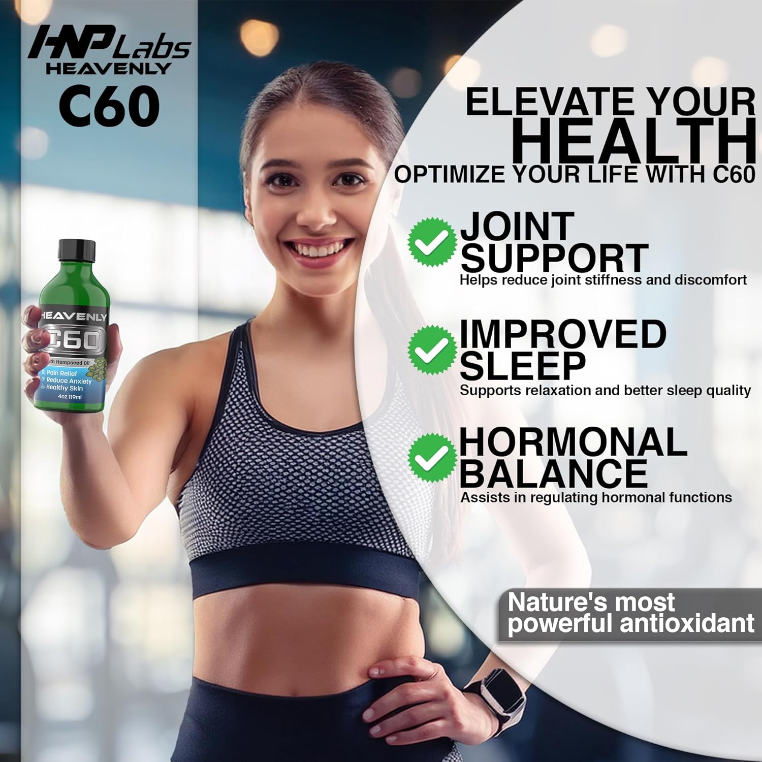 Skin & Vitality Support: Nourishes from within to address skin issues, smooth fine lines, and boost energy levels, enhancing overall well-being with powerful c60 antioxidants in hemp seed oil for skin & hair