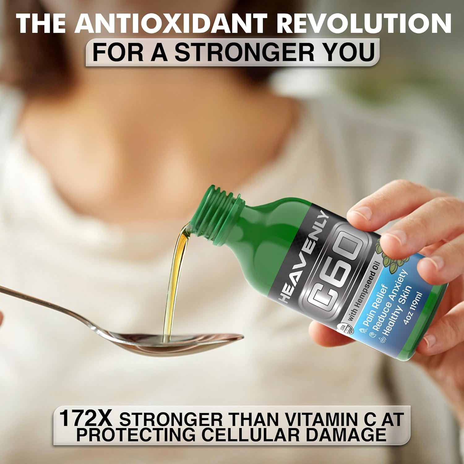 Skin & Vitality Support: Nourishes from within to address skin issues, smooth fine lines, and boost energy levels, enhancing overall well-being with powerful c60 antioxidants in hemp seed oil for skin & hair