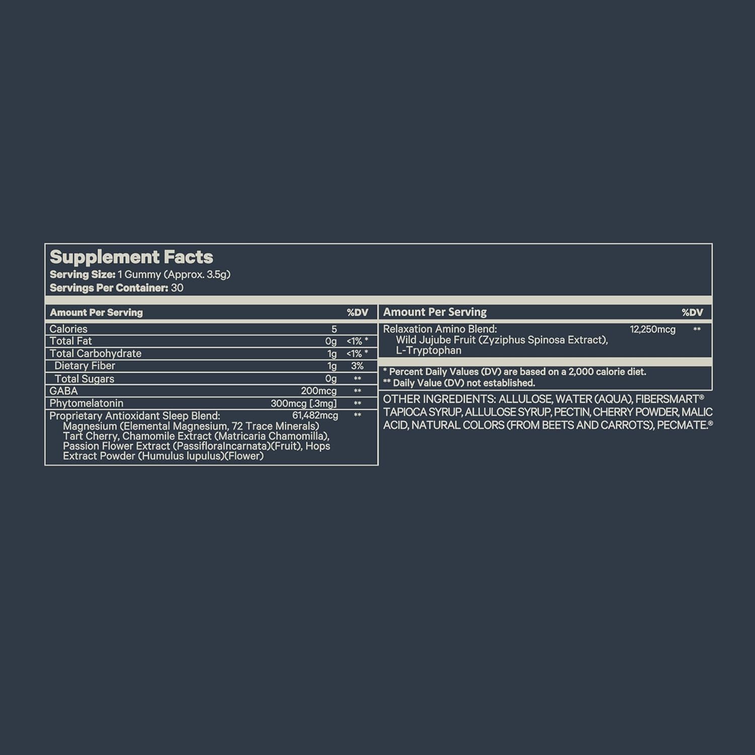 6 Botanicals Working Together: Tart Cherry, Wild Jujube, Magnesium Blend (with 72 trace minerals), Chamomile, Hops, Passionflower, GABA, and L-tryptophan — a comprehensive sleep formula that addresses every stage of the sleep cycle, from winding down to staying asleep to waking restored.