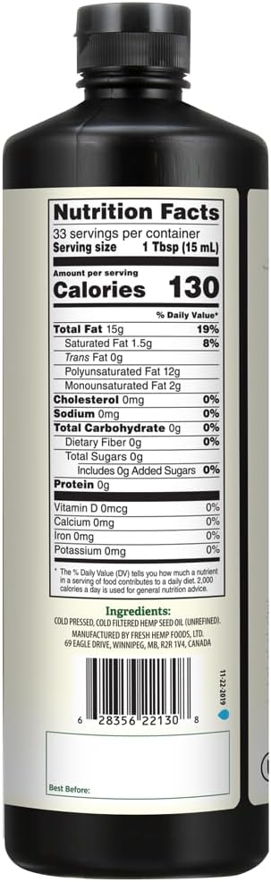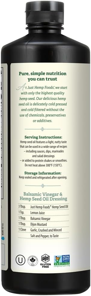 Just Hemp Foods All Natural Hemp Seed Oil, Cold Pressed, Cold Filtered, 12g of Omega 3 & 6 Per Serving, 16.9 Fl Oz