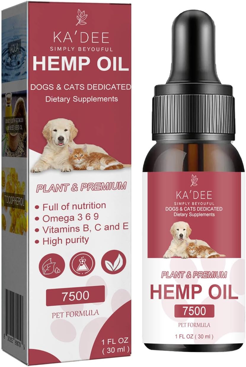 Ka’Dee Simply Beyouful Hemp Oil for Dogs & Cats, 100% Pure Plant-Based Pet Supplement, Non-GMO, Hypoallergenic, 1 fl oz, Brown