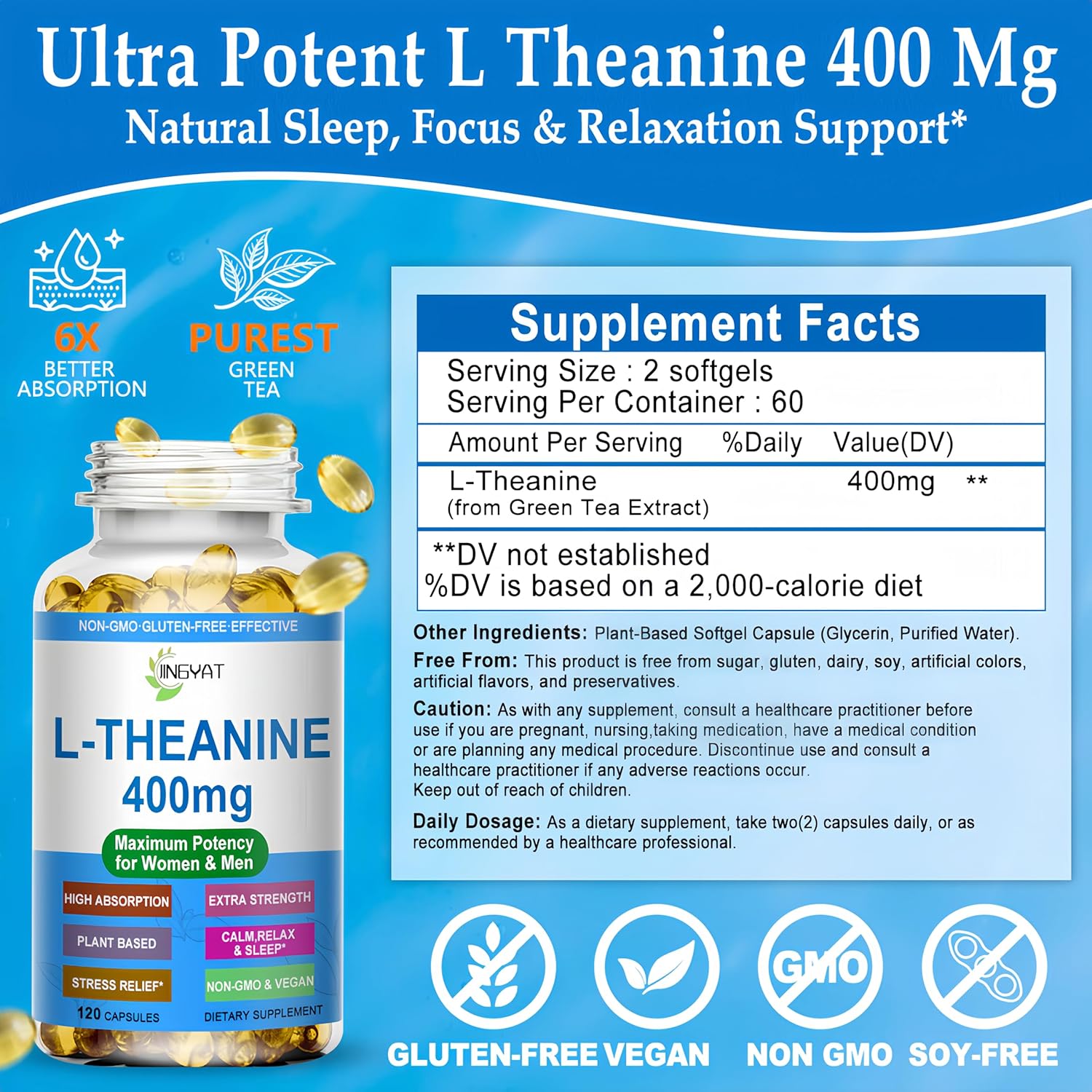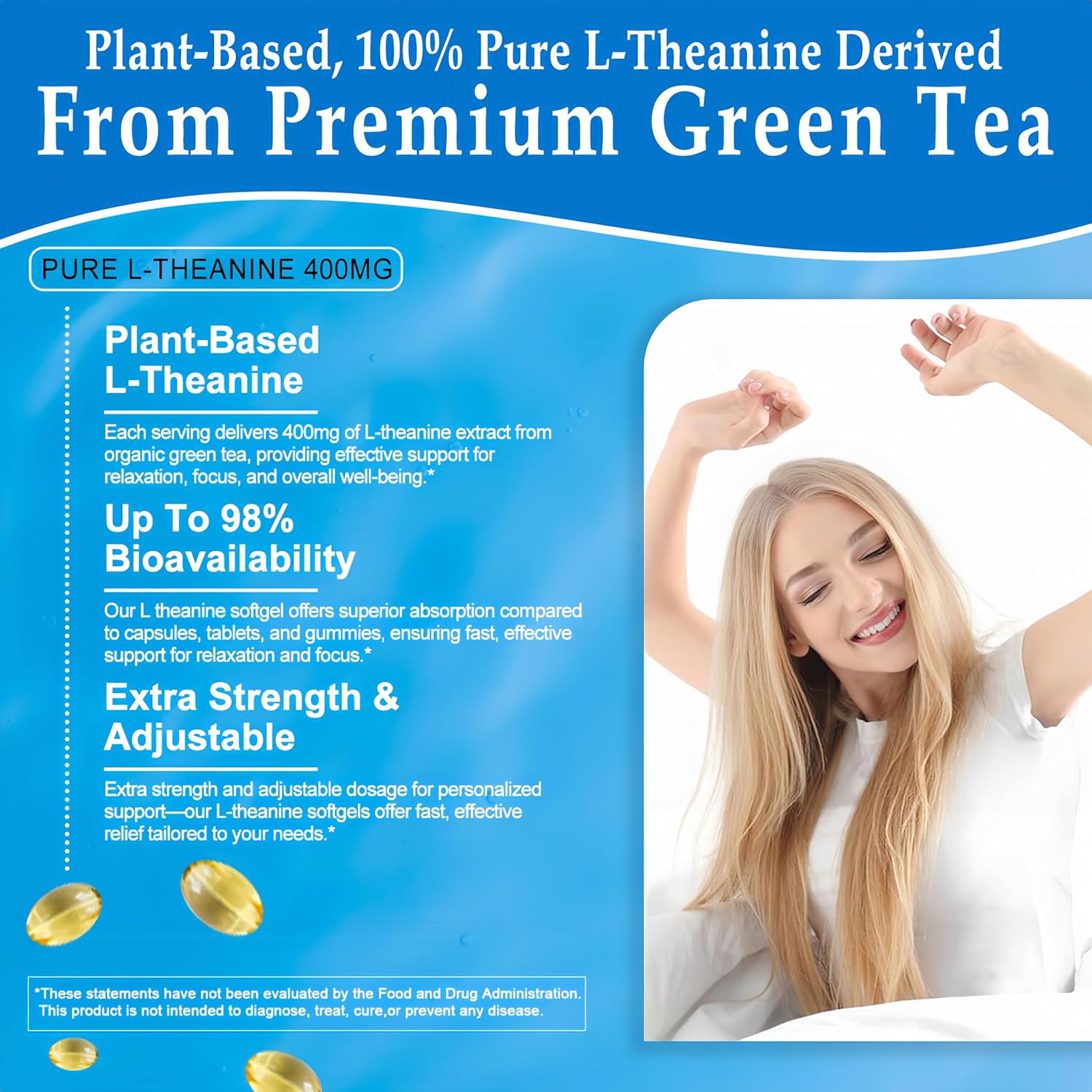 Clean, Vegan-Friendly Formula: We are dedicated to offering the highest quality with full transparency. Our L Theanine is crafted with a carefully selected blend of premium, all-natural ingredients. Manufactured in facilities that adhere to GMP standards, our formula guarantees purity and potency in every softgel, providing you with a clean, reliable, and powerful supplement for optimal health.