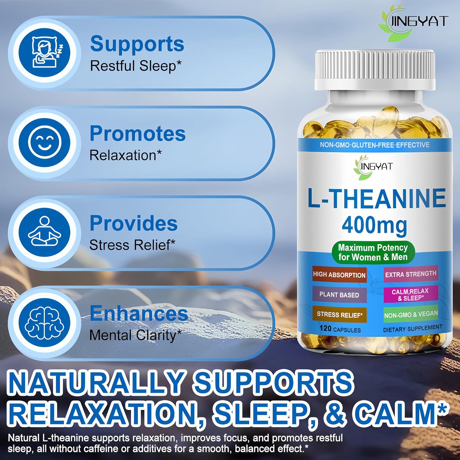 L Theanine Supplement: L theanine, a natural compound from green tea, promotes calmness and focus without causing drowsiness. It provides stress relief, enhances mental clarity, and boosts cognitive performance, making it ideal for busy days. L-Theanine also supports better sleep by calming the mind, leading to deeper, more restorative rest. *