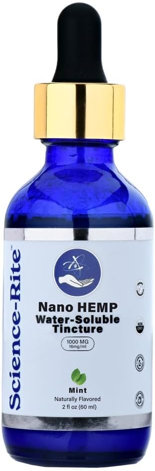 Product Summary: Science-Rite Nano Water-Soluble Hemp – Ultra-Fast-Acting Drops for Maximum Results – Scientific-Grade, 3X Faster, 9X Absorption, Cold Extracted – Mint Flavor. (1000mg)