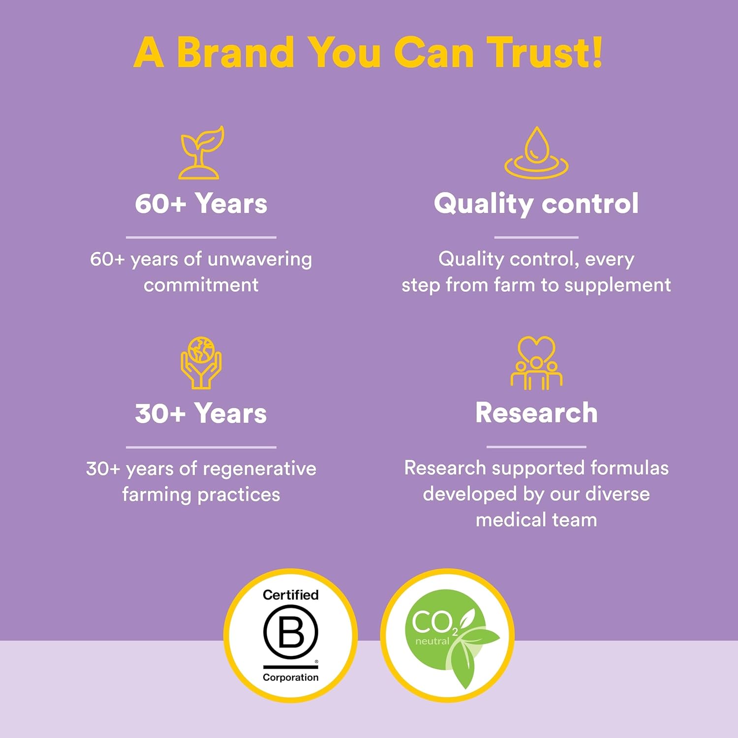 Independently tested and third-party certified for GMOs and over 800 contaminants using advanced technology such as mass spectrometry to ensure purity and potency