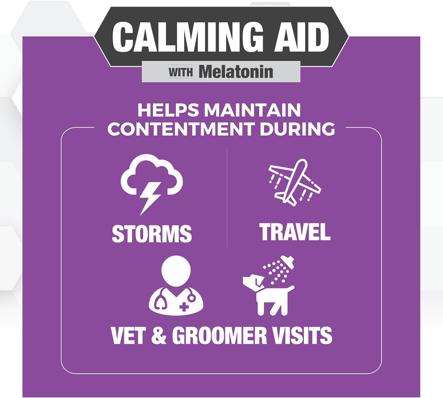 Ideal for Stressful Situations: Formulated to help keep your dog relaxed during common stress-inducing situations such as travel, fireworks, grooming, vet visits, or changes in routine.