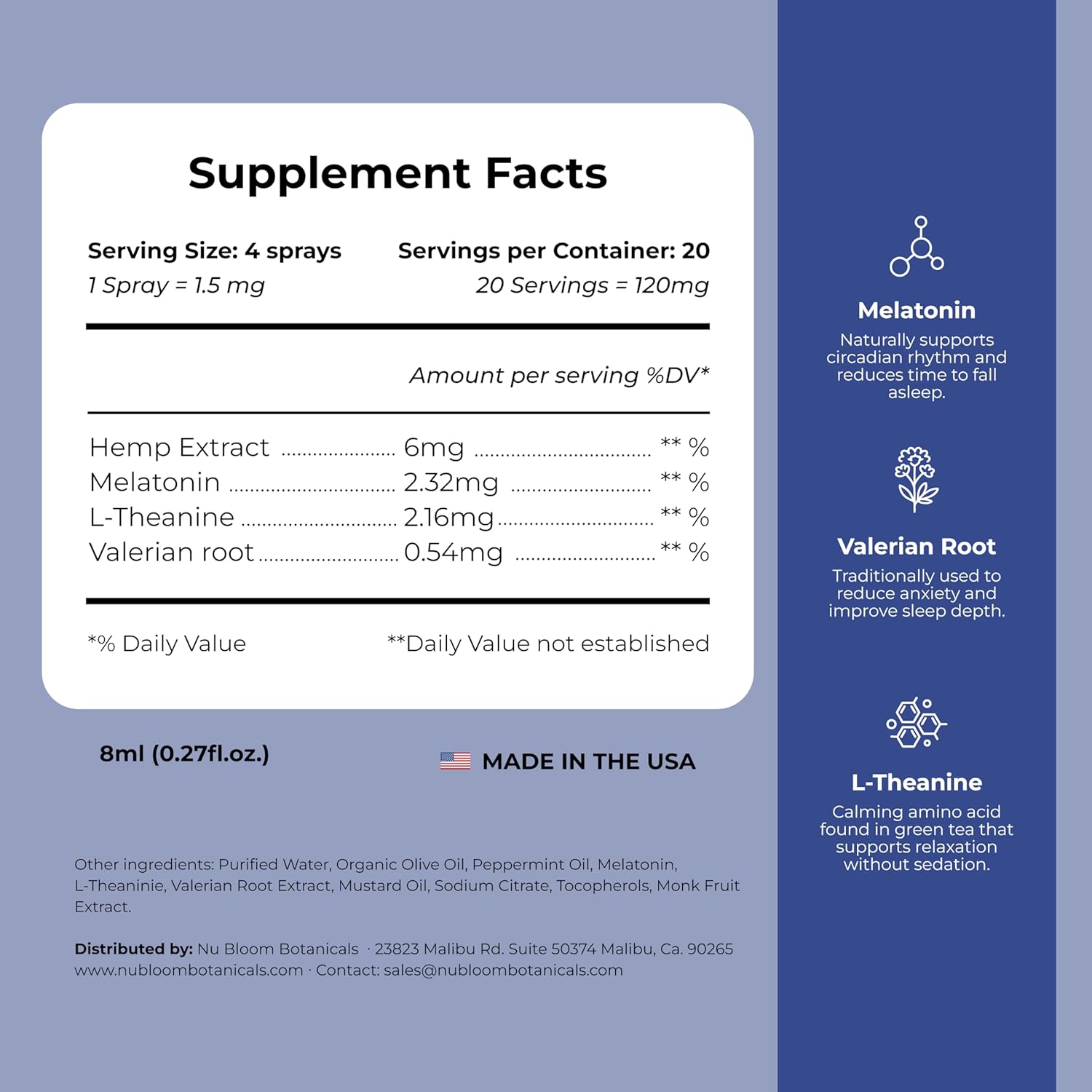 Made in the USA with rigorous quality assurance: produced in an FDA-registered, GMP-certified laboratory in Southern California, and thoroughly third-party tested to guarantee purity, potency, and consistency, so you can trust every spray.