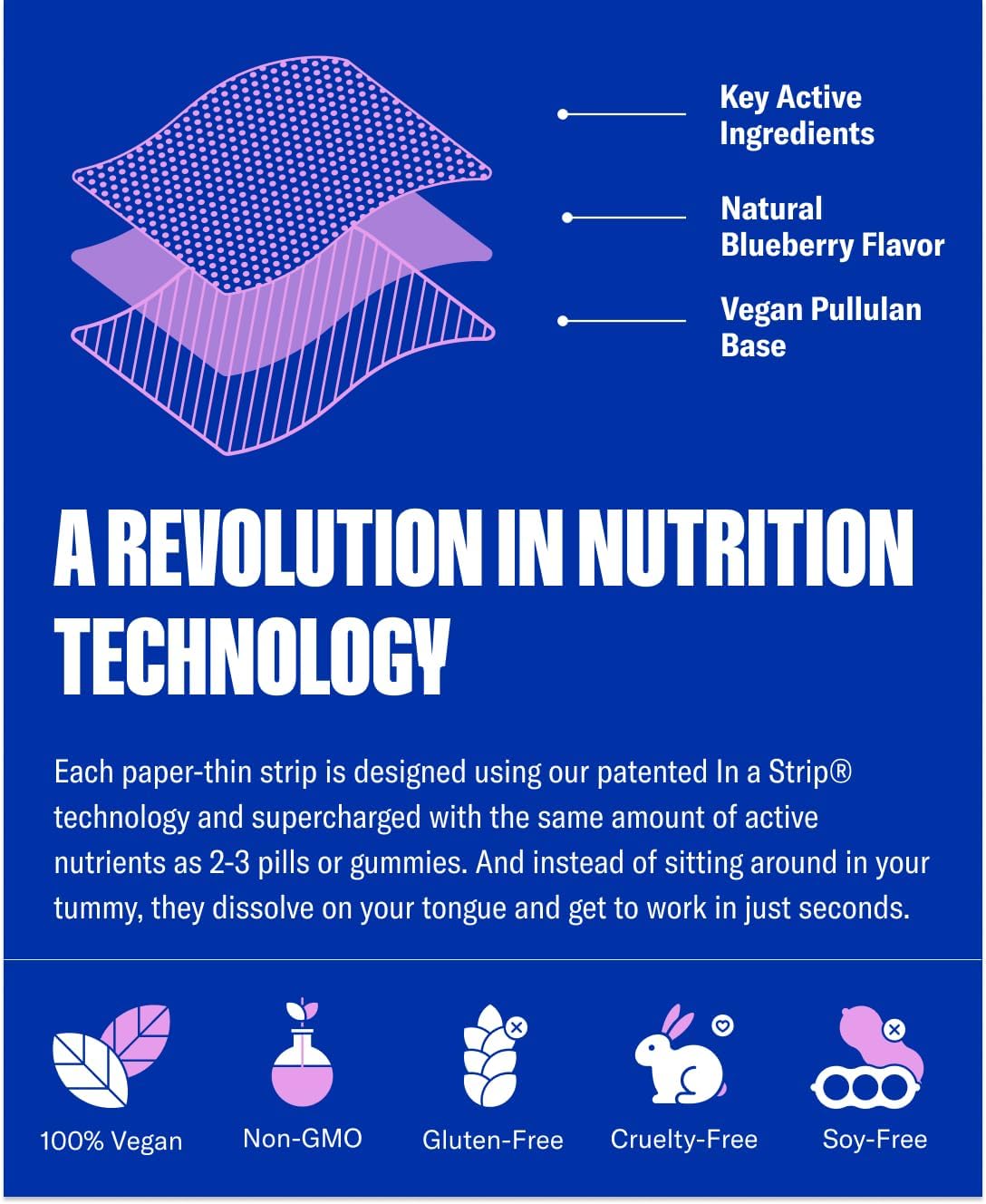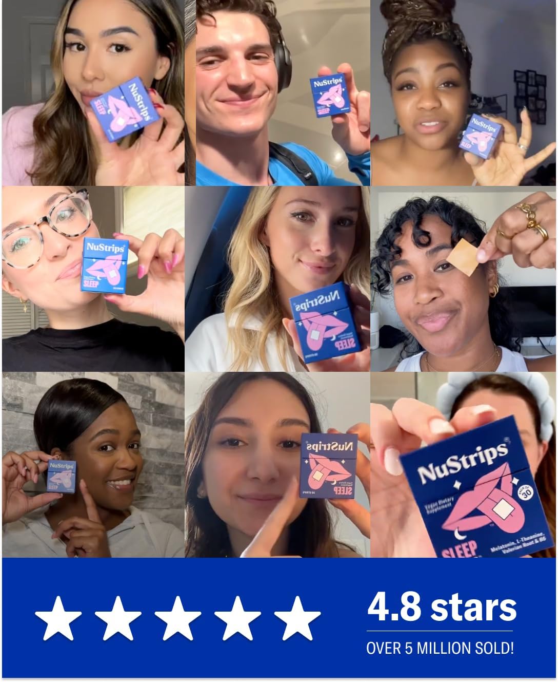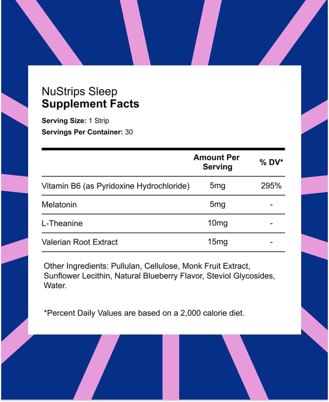 NuStrips™ Fast-Dissolving Sleep Strips with 5mg Melatonin, Valerian Root, L-Theanine & Vitamin B6 – Blueberry Flavor – Natural Sleep Aid, Vegan, Non-GMO, Gluten Free – Fall Asleep Fast (30 Strips)