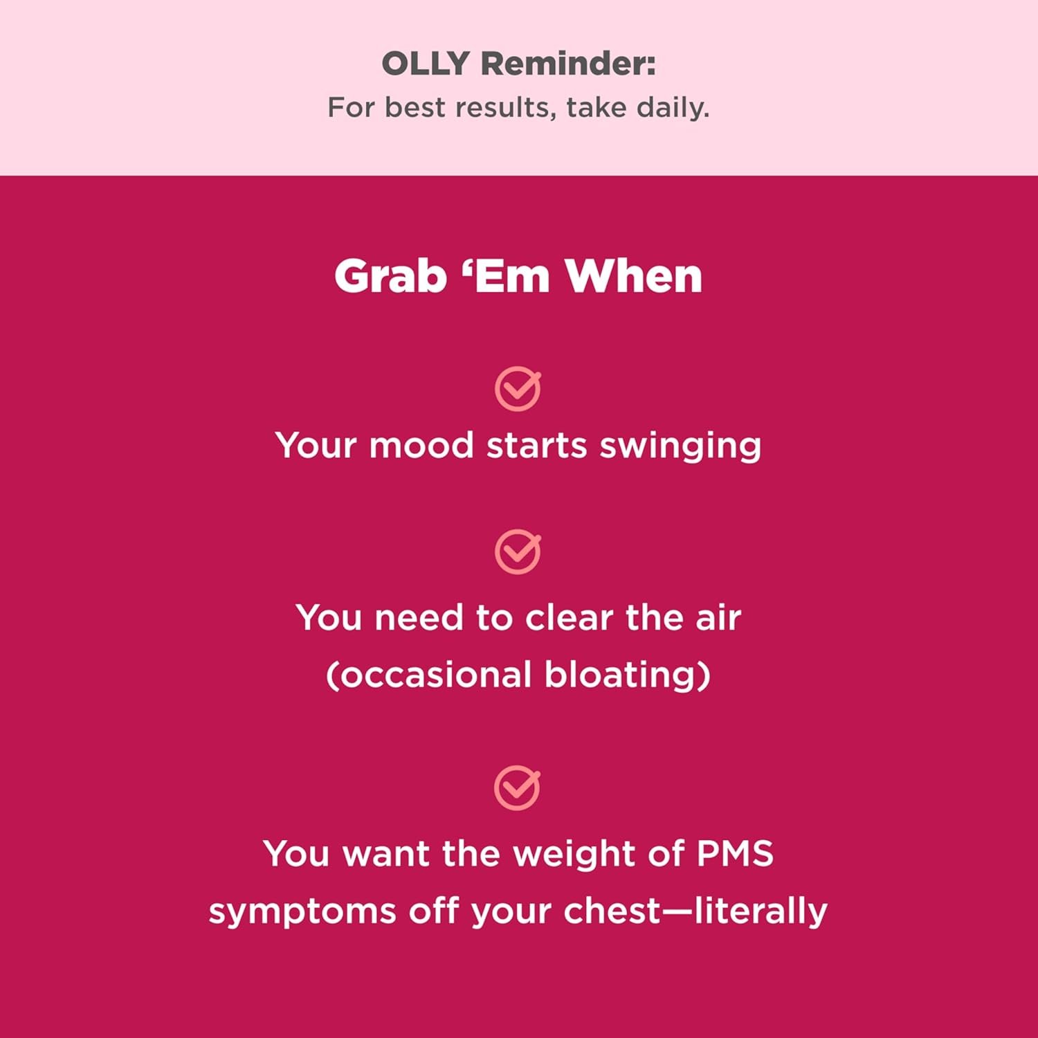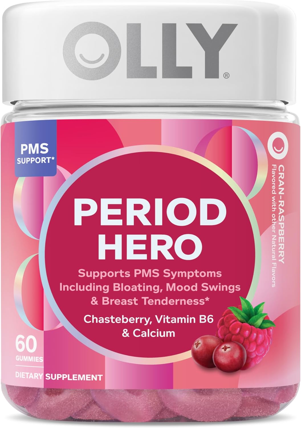OLLY PERIOD HERO GUMMIES: Feeling hormonal? That’s normal, and we’ve been there. This unique formula of Chasteberry, Vitamin B6 & Calcium supports you through your cycle and helps you find ease from your (not so fun) PMS*