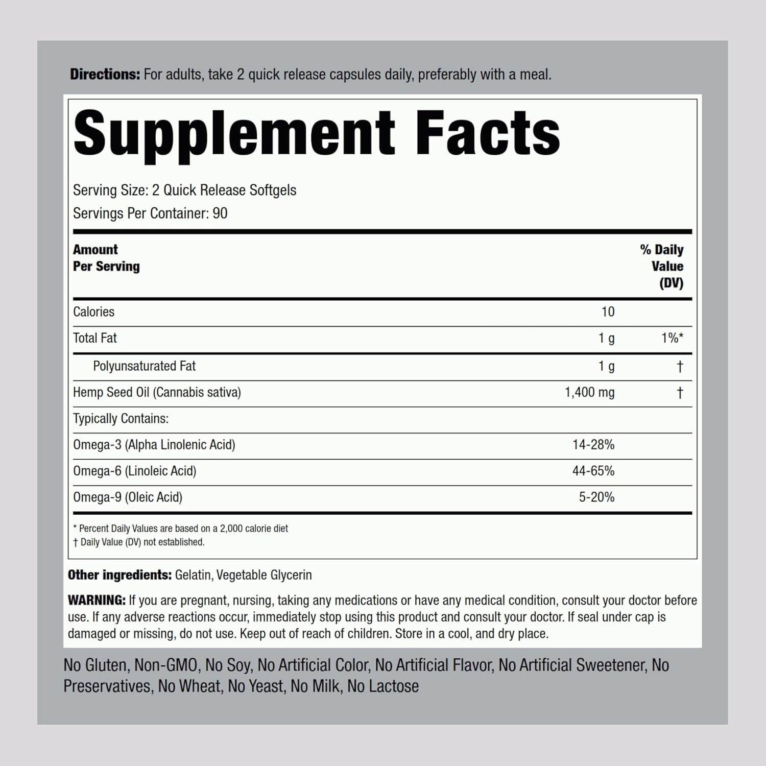 Piping Rock Hemp Oil Capsules 1400mg | 180 Softgels | Omega 3 6 9 | Cold Pressed | Gluten Free Supplements, Non-GMO