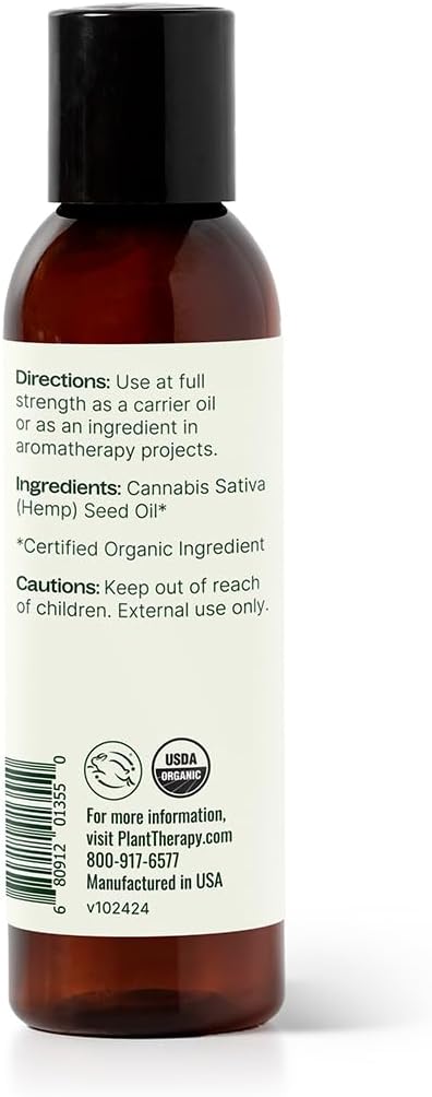 Plant Therapy Organic Hemp Seed Carrier Oil 4 oz Base Oil for Aromatherapy, Essential Oil or Massage use