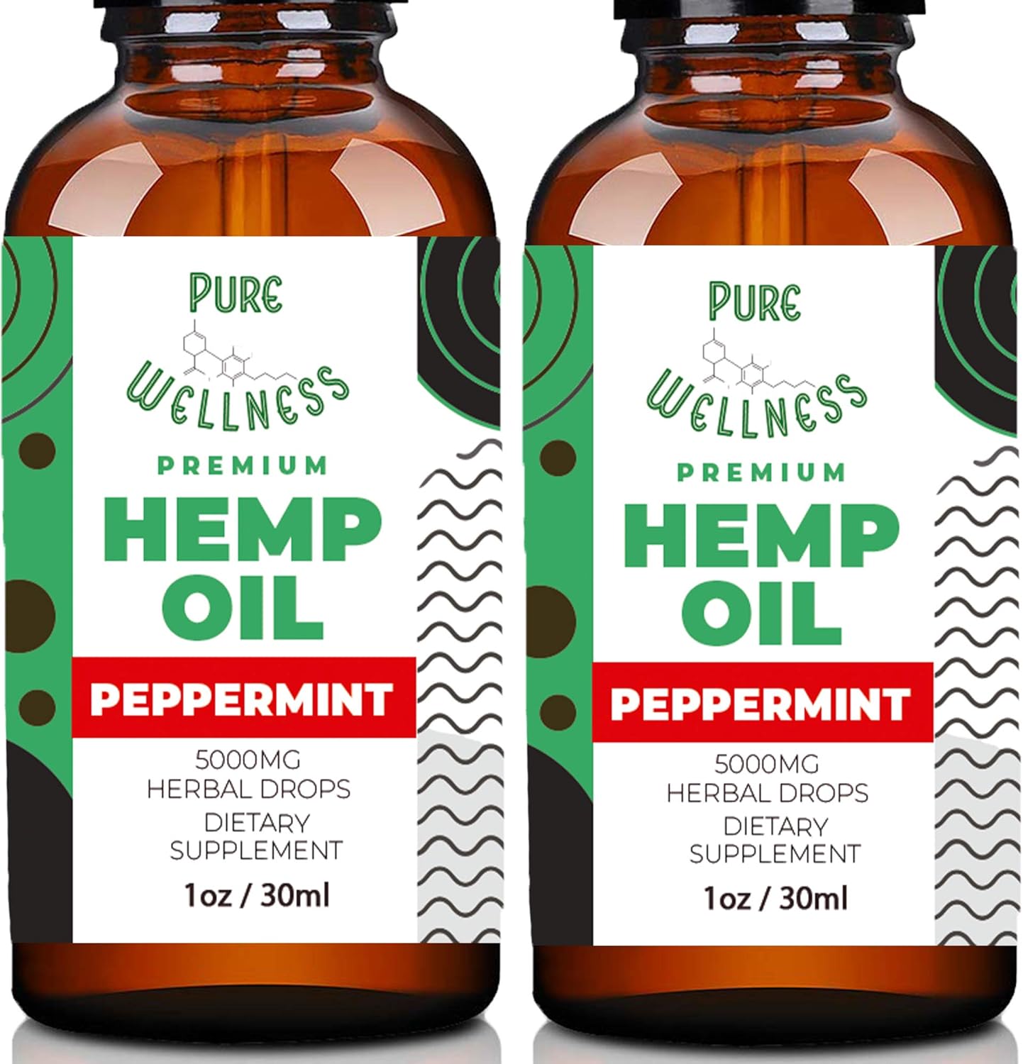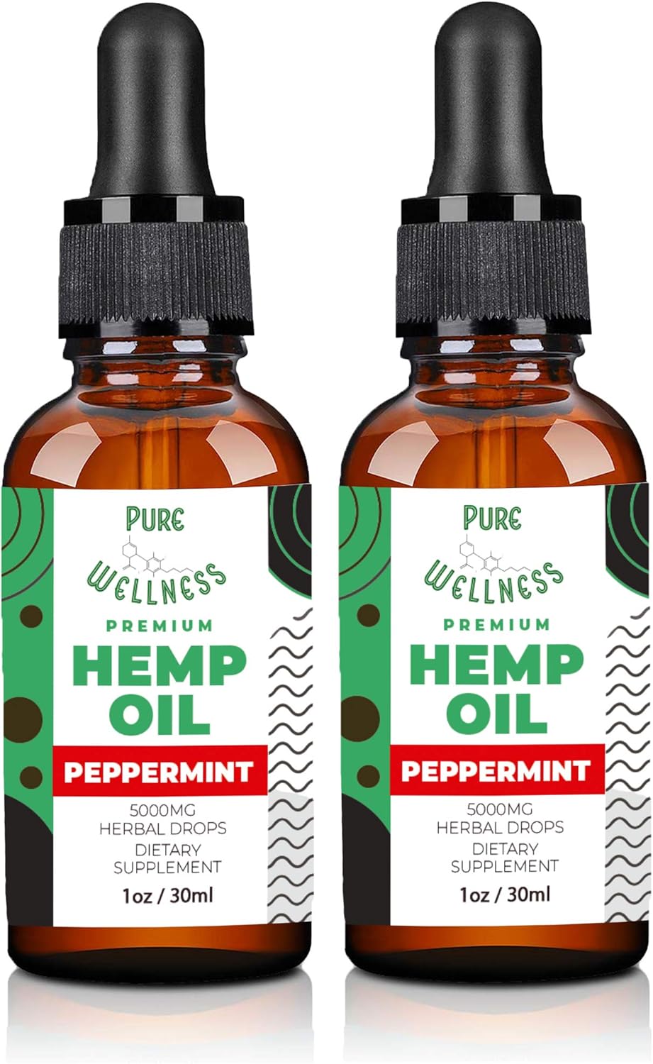 Pure Wellness Hemp Seed Oil Drops Peppermint Flavor for Improved Cognitive Function, Omega 3 6 9 Fatty Acids, Organic, Non-GMO, Vegan (5,000mg 2-Pack)