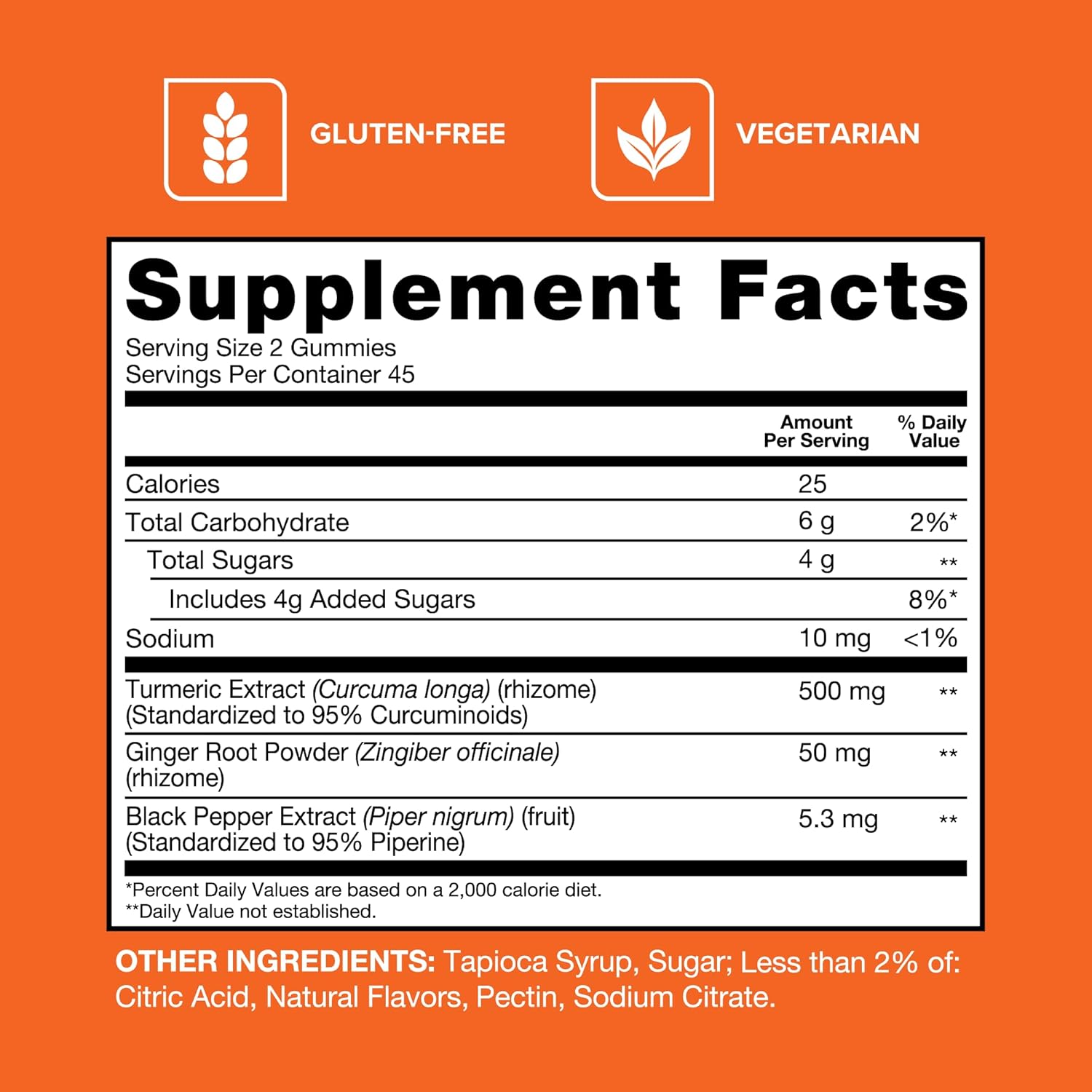 ENHANCED ABSORPTION: Qunol Turmeric with Black Pepper Extract + Ginger Gummies are formulated with black pepper extract, increasing bioavailability and up to 35x better absorption.§