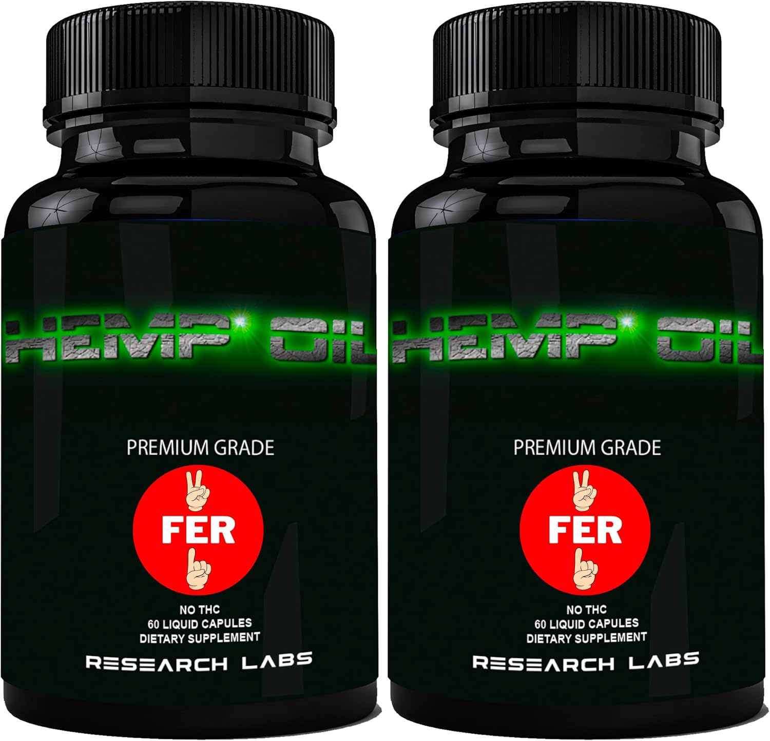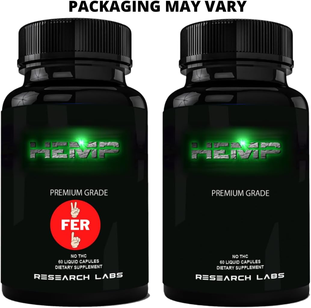 Research Labs 450,000 Premium Hemp Capsules, 2 Fer 1 Package! 100% Organic All Natural Oil, Worry Nervousness Body Ache Stress Support