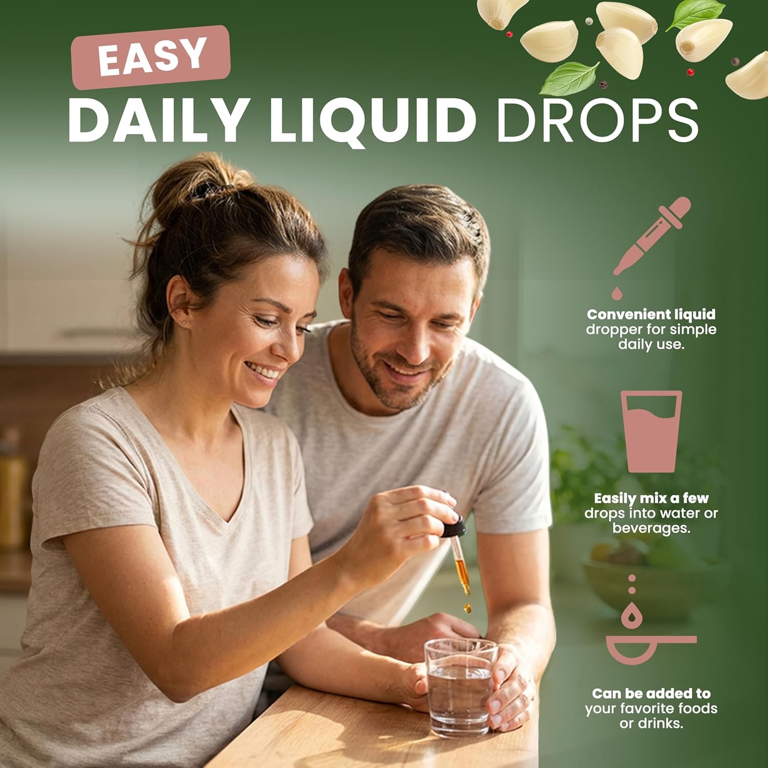Liquid Drop Convenience: Fast-absorbing liquid drops allow flexible use—add to water, juice, or food for an easy daily routine without capsules or tablets.