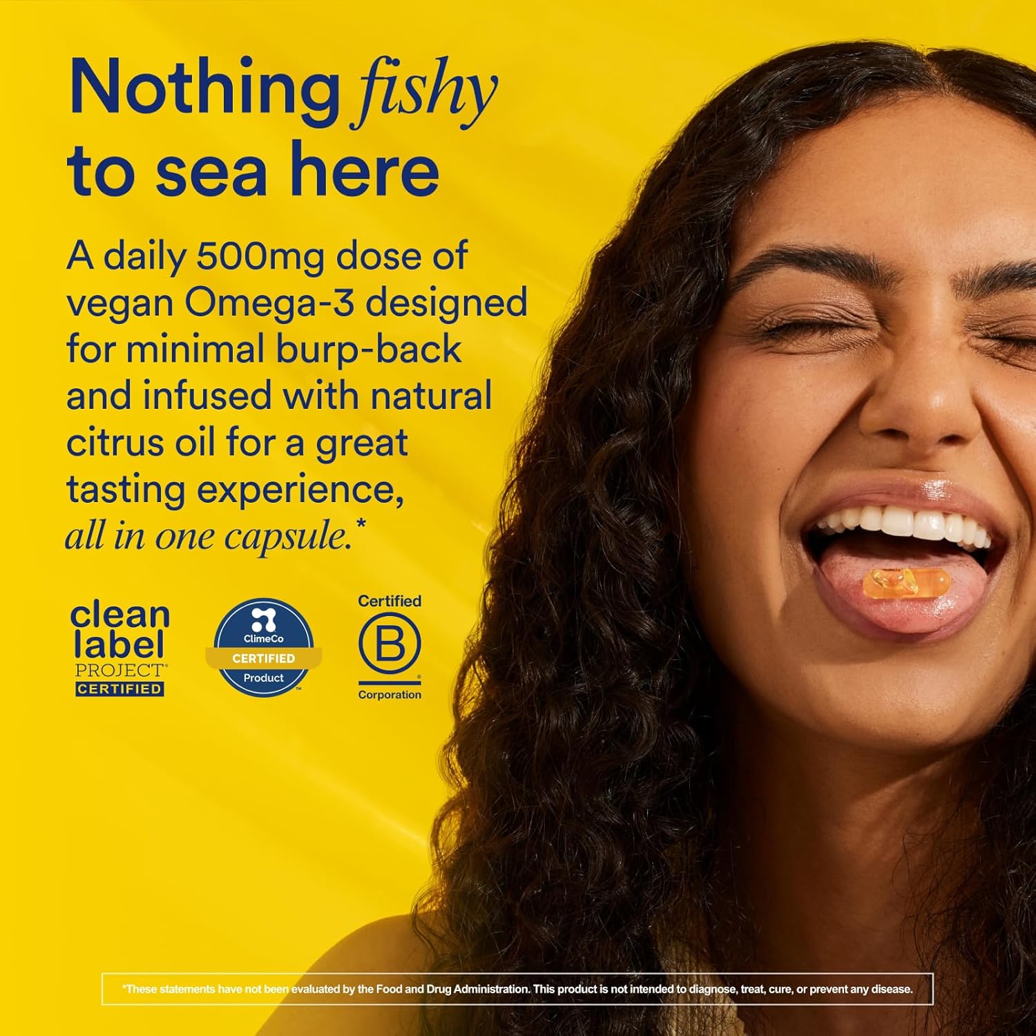 A daily 500 mg dose of vegan Omega-3 designed with a citrus taste and minimal burp-back.*